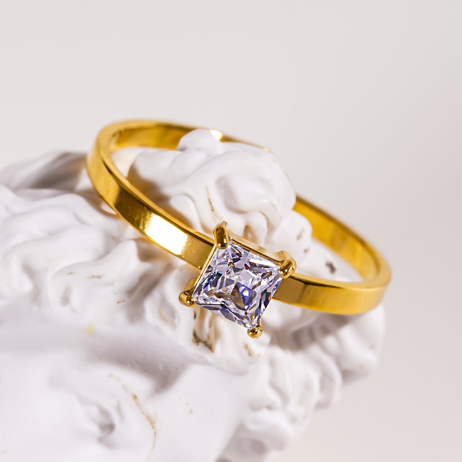 ADHIKA: Classic Gold Ring with a Square Zirconia Centerpiece