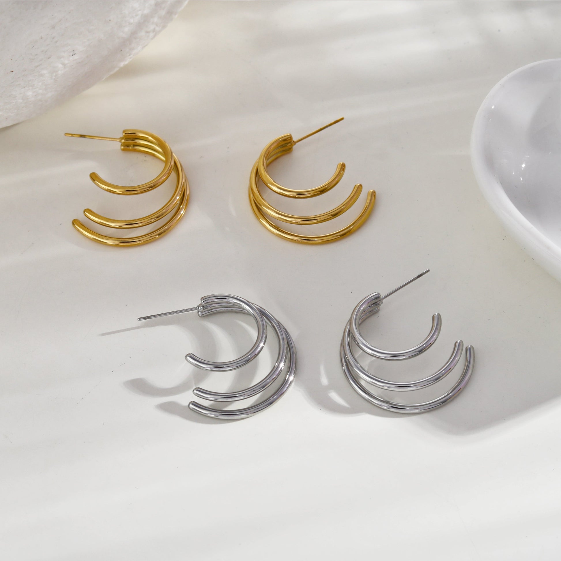 Style: AILSA 220524G Triple Stacked Gold Hoop Earrings