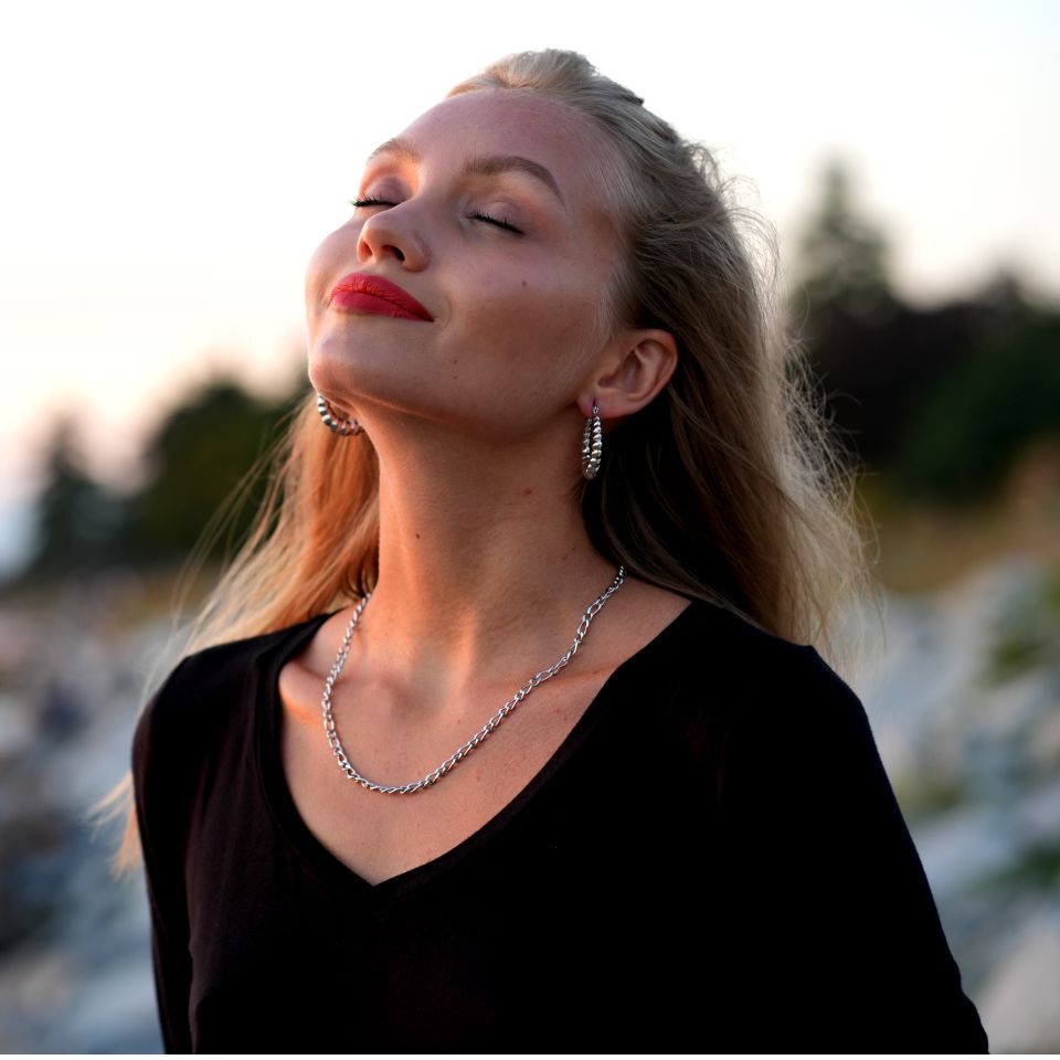 We believe in a sustainable future, and therefore use a recycled premium grade base metal to craft our designs. Finished in an ultra-luxe non-tarnish silver tone. Free of Nickel, Lead and Cadmium. Non-Allergic and will not turn Skin Green.