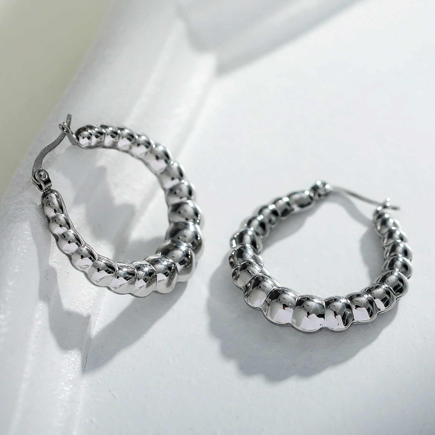Add a mesmerising contemporary touch to your look with these croissant shaped hoops.