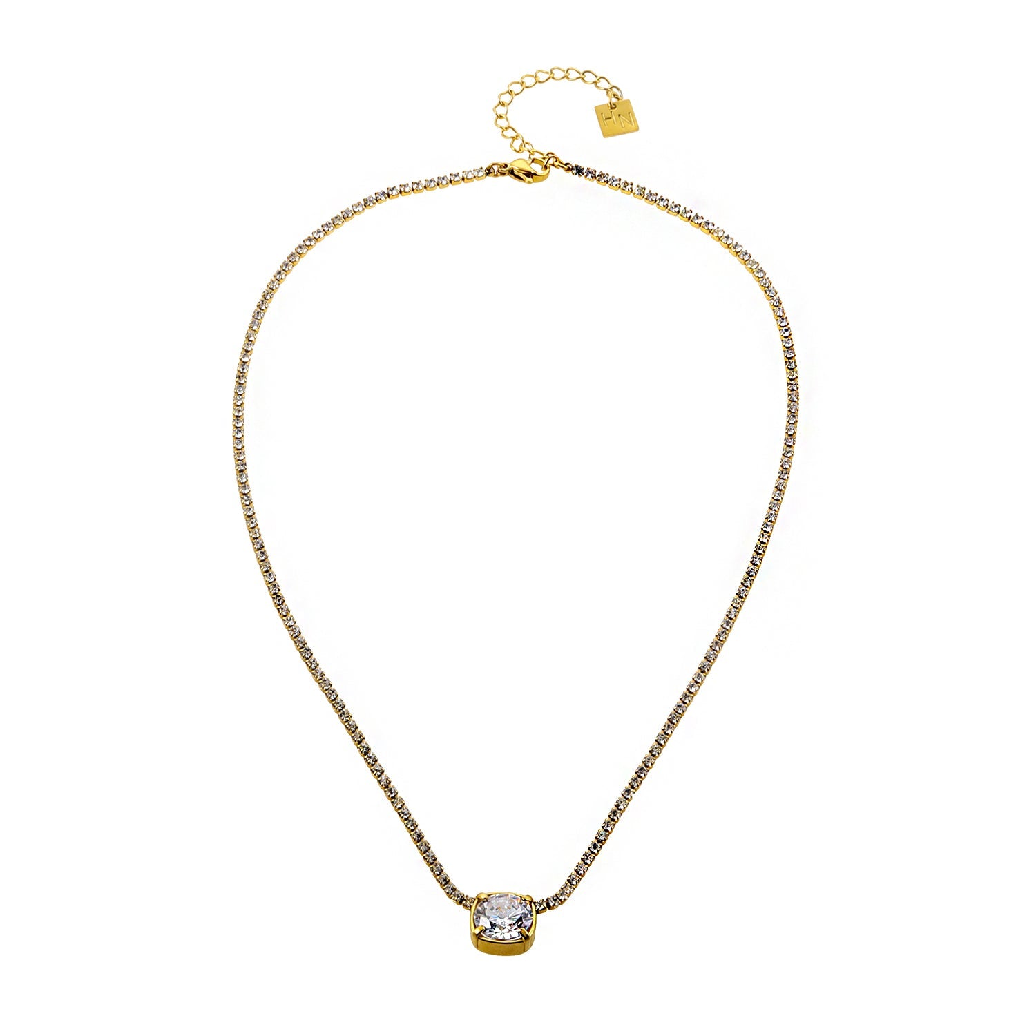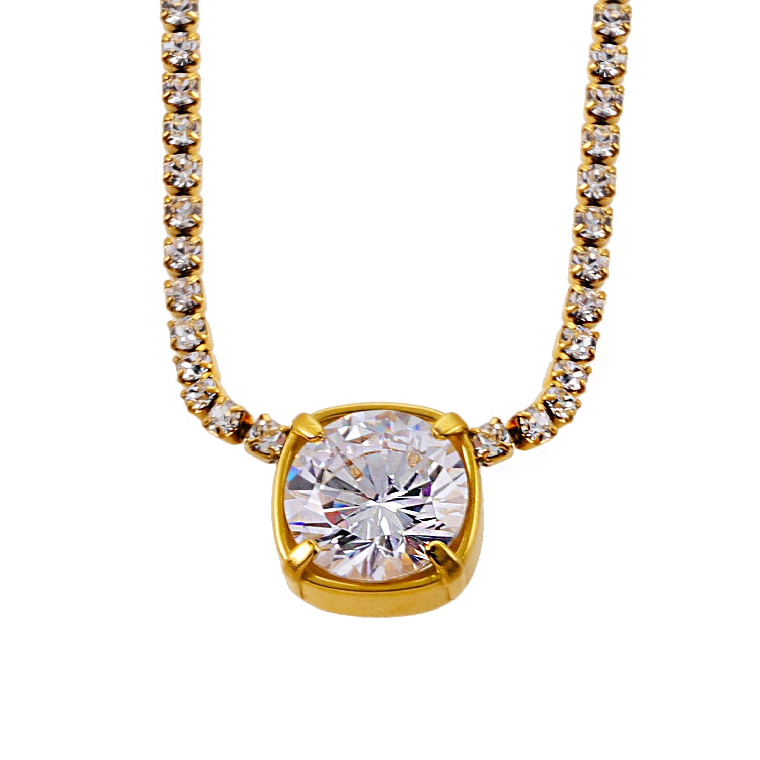 AURA: Bezel-Set Zirconia Pendant on a Mini-Zirconia Beaded Chain Necklace