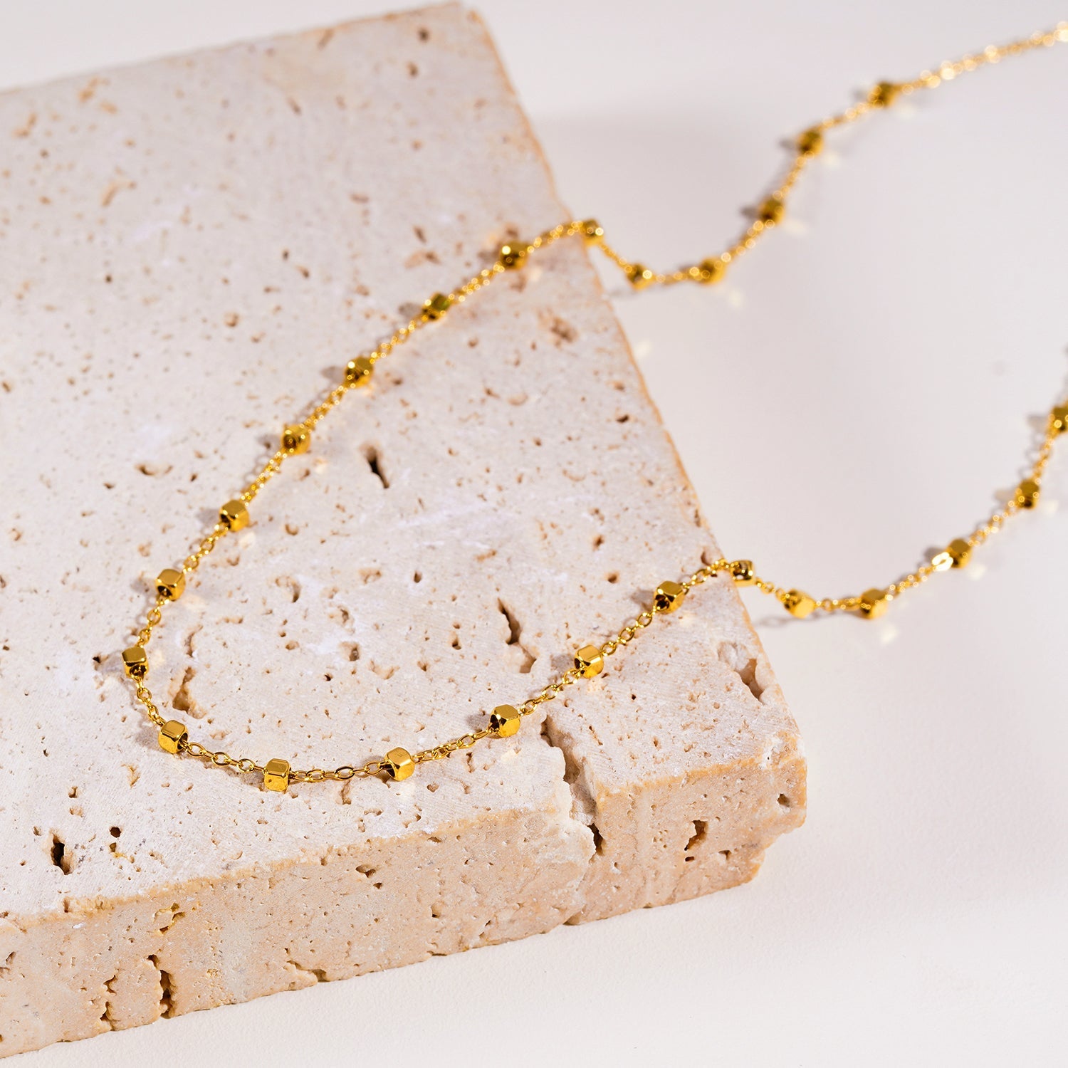 AUREOLE: Essential Daily Chain with Delicate Square Beads in Gold.