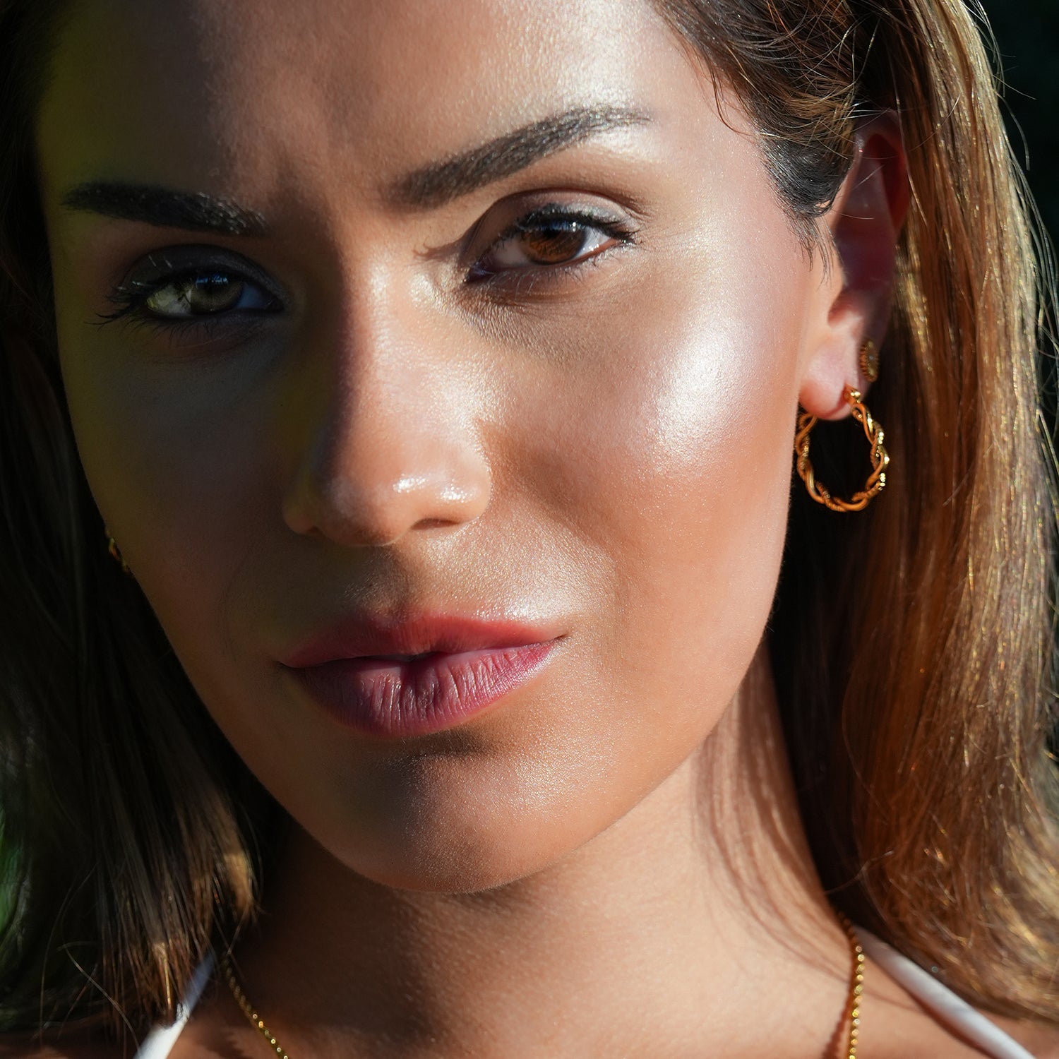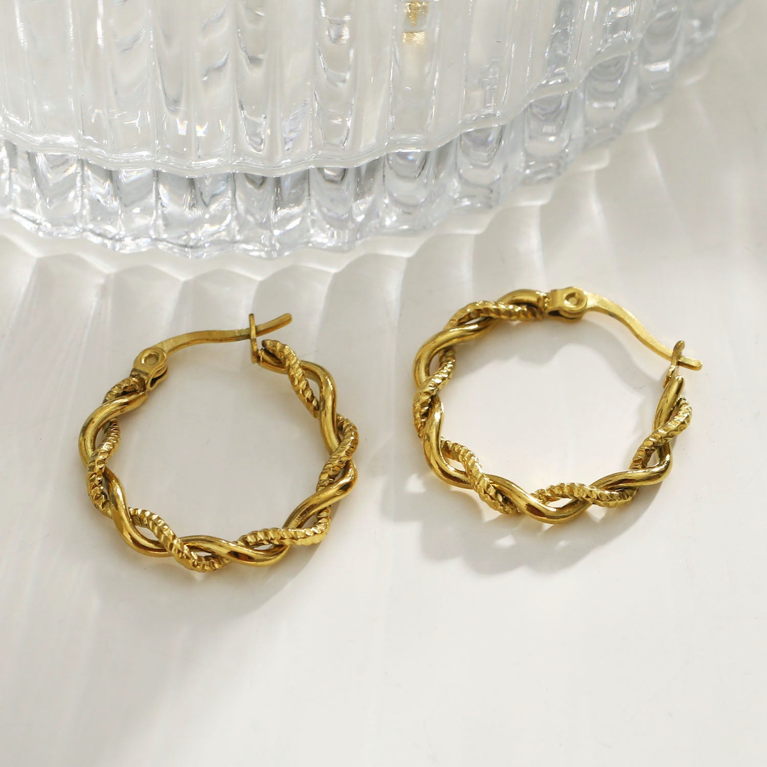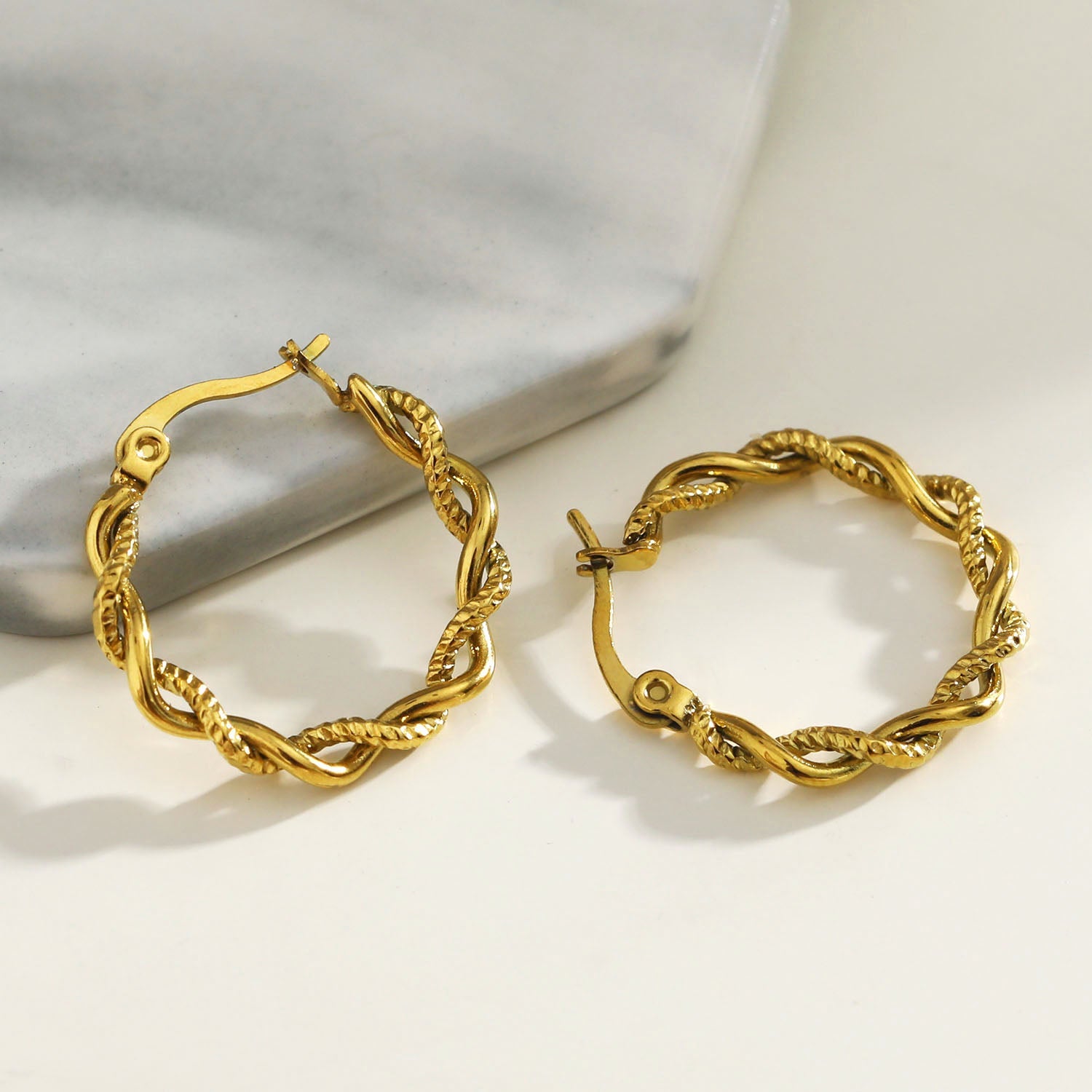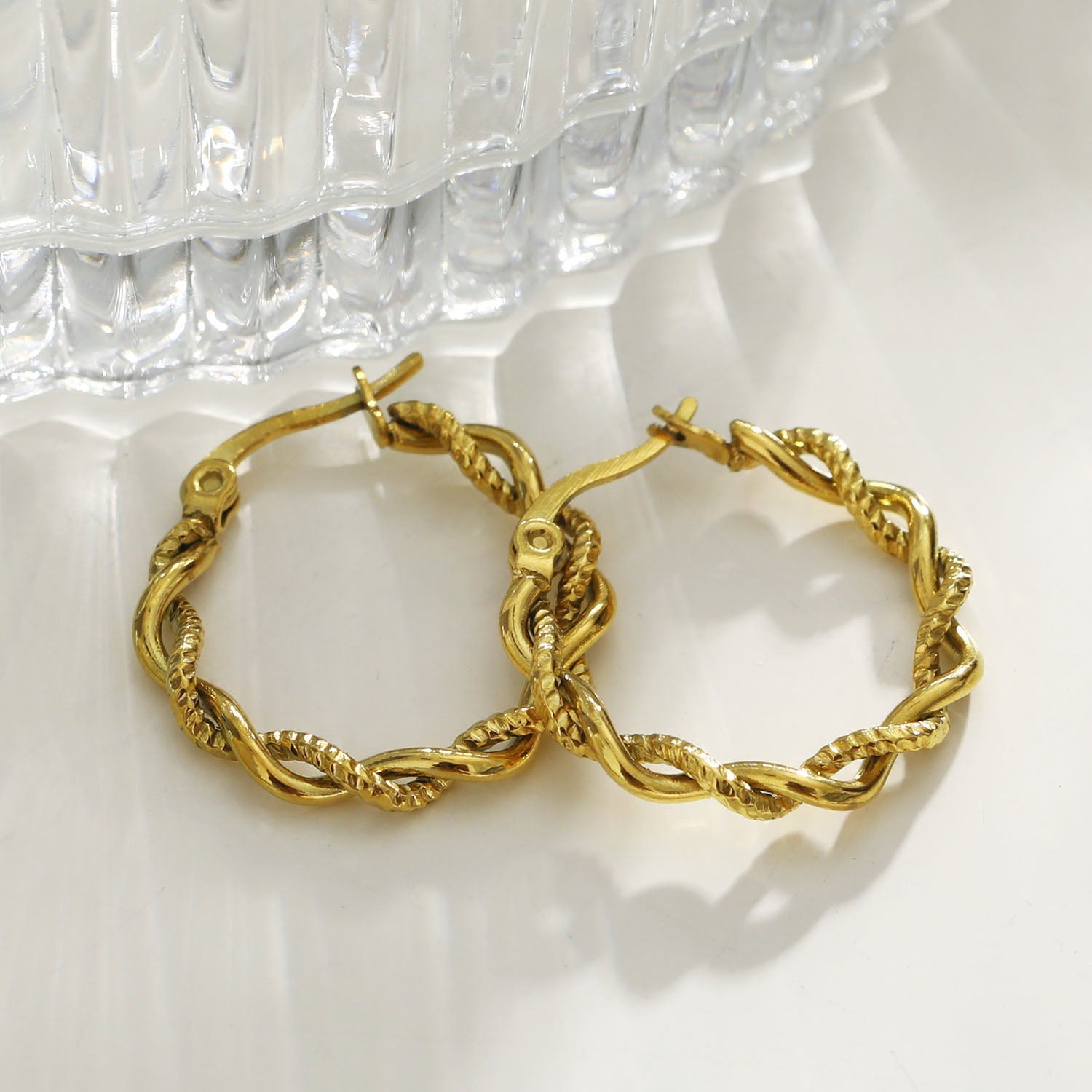 BARBARA Gold: Contrast Textured Twisted Rope Hoop Earrings