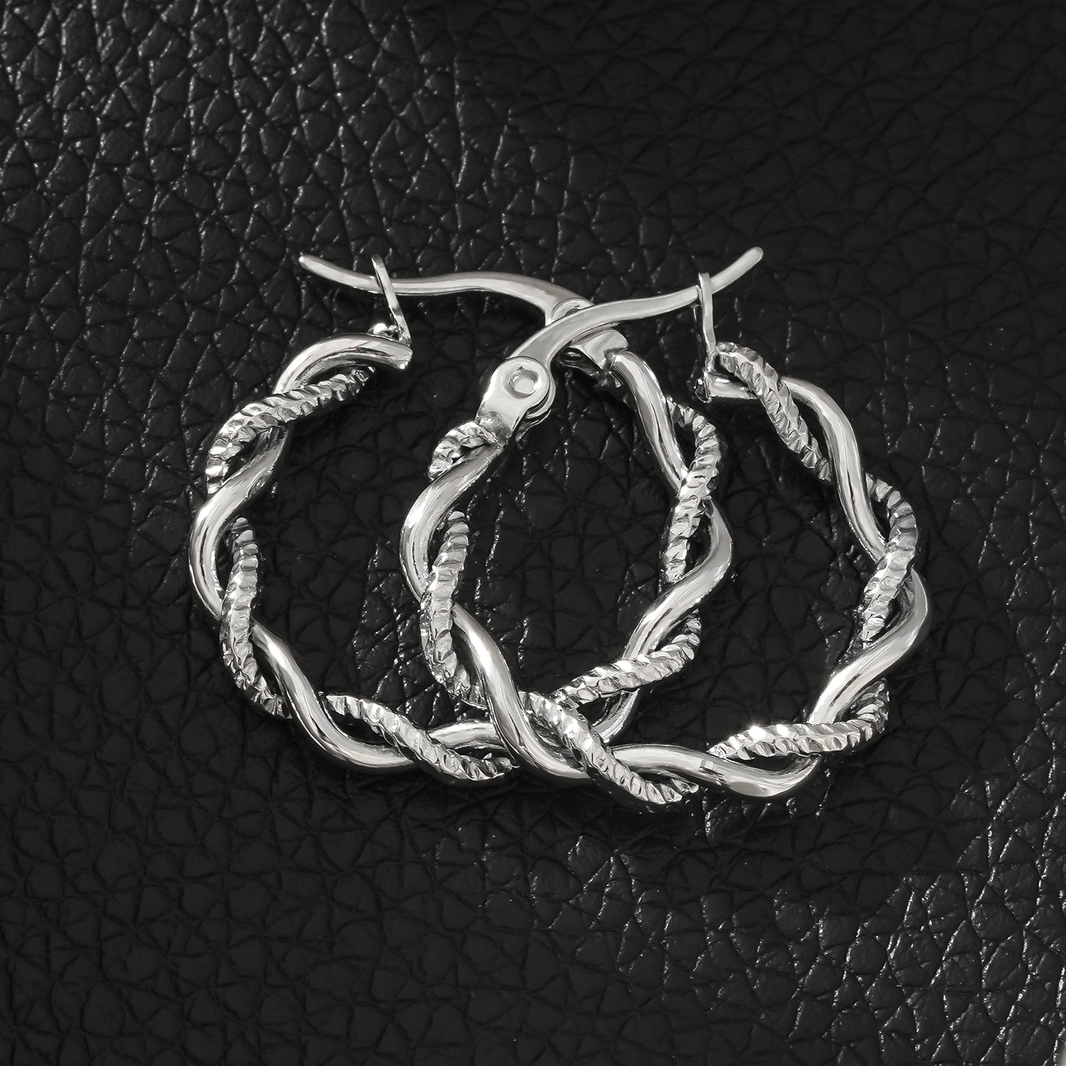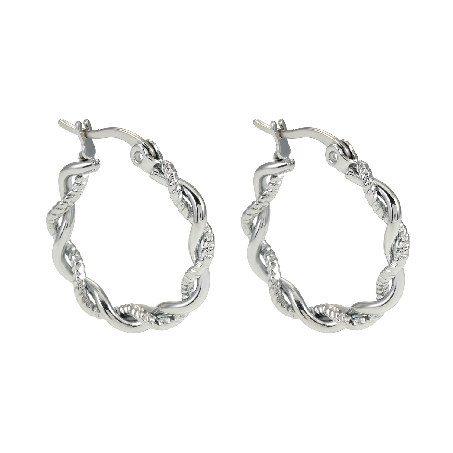 BARBARA Silver (White Gold): Contrast Textured Twisted Rope Hoop Earrings