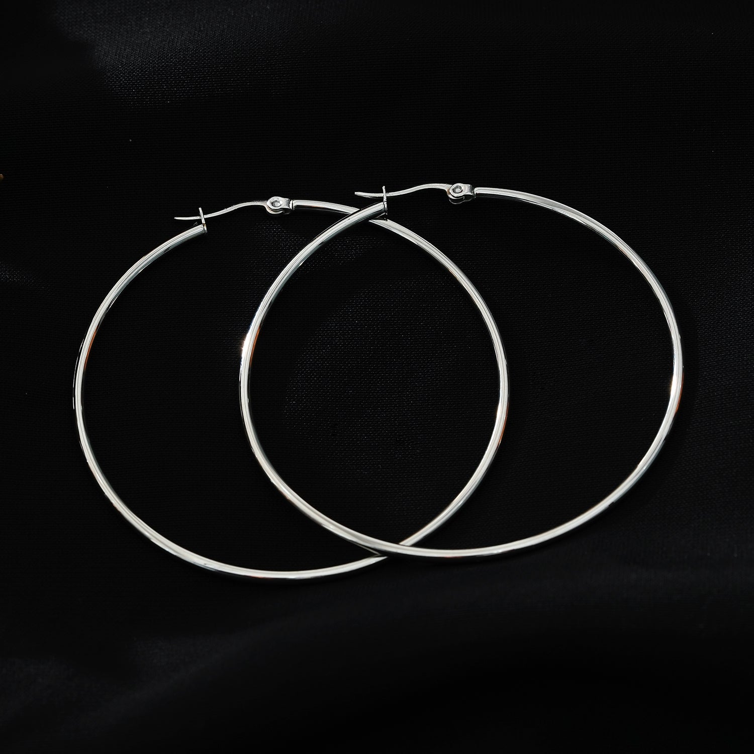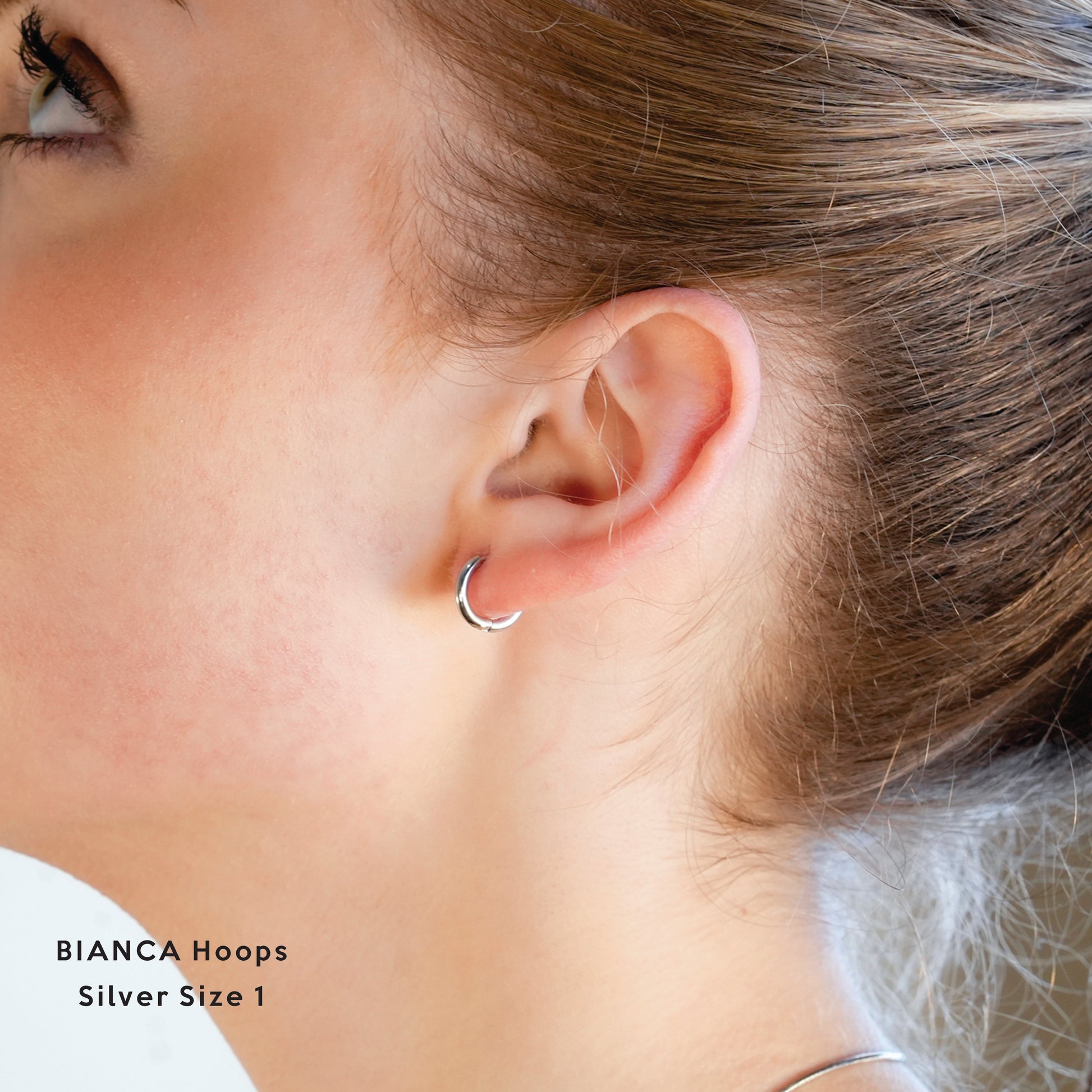 BIANCA Silver: Classic Essential Everyday Basic Round Silver Hoops. Available in 7 Sizes - 1cm to 6cm