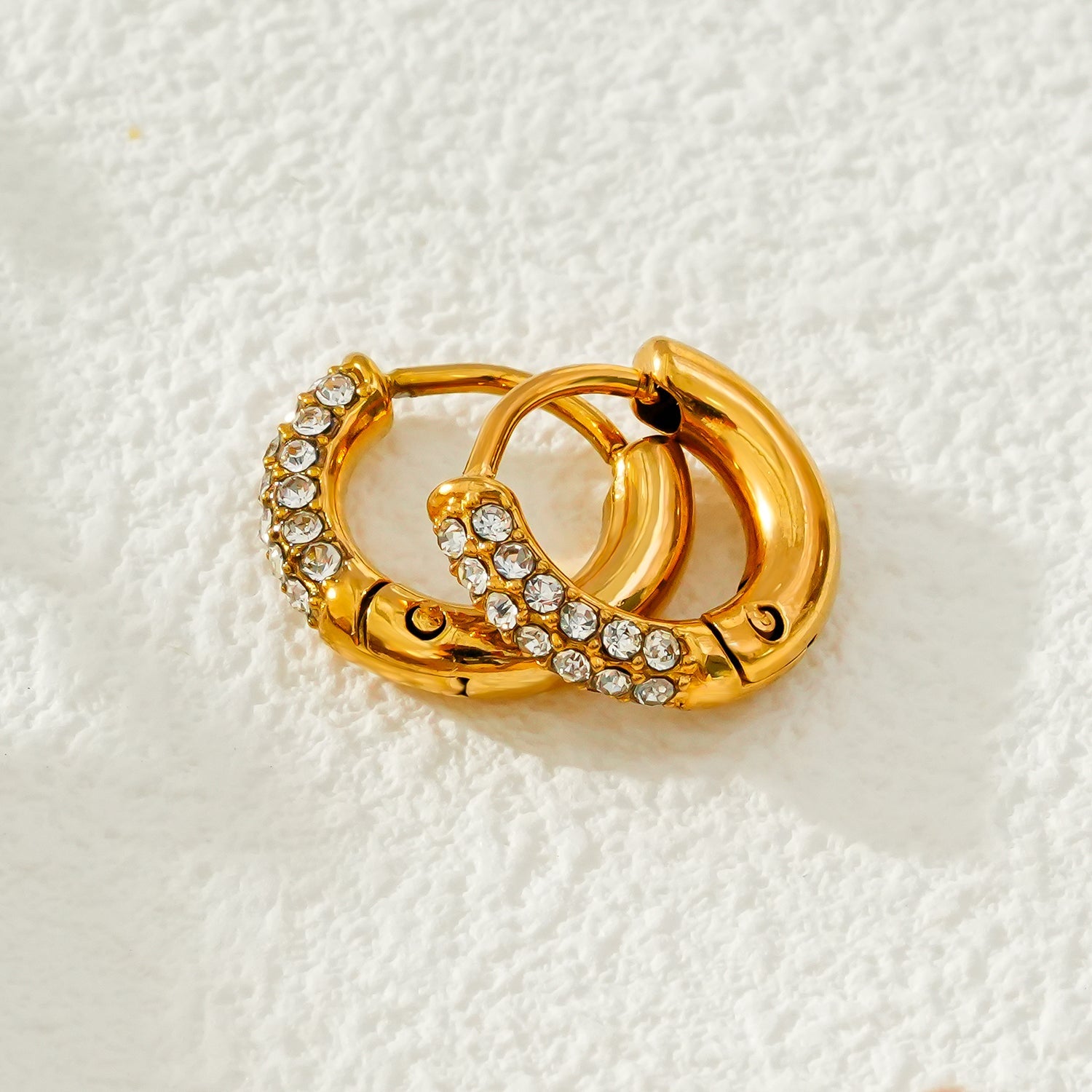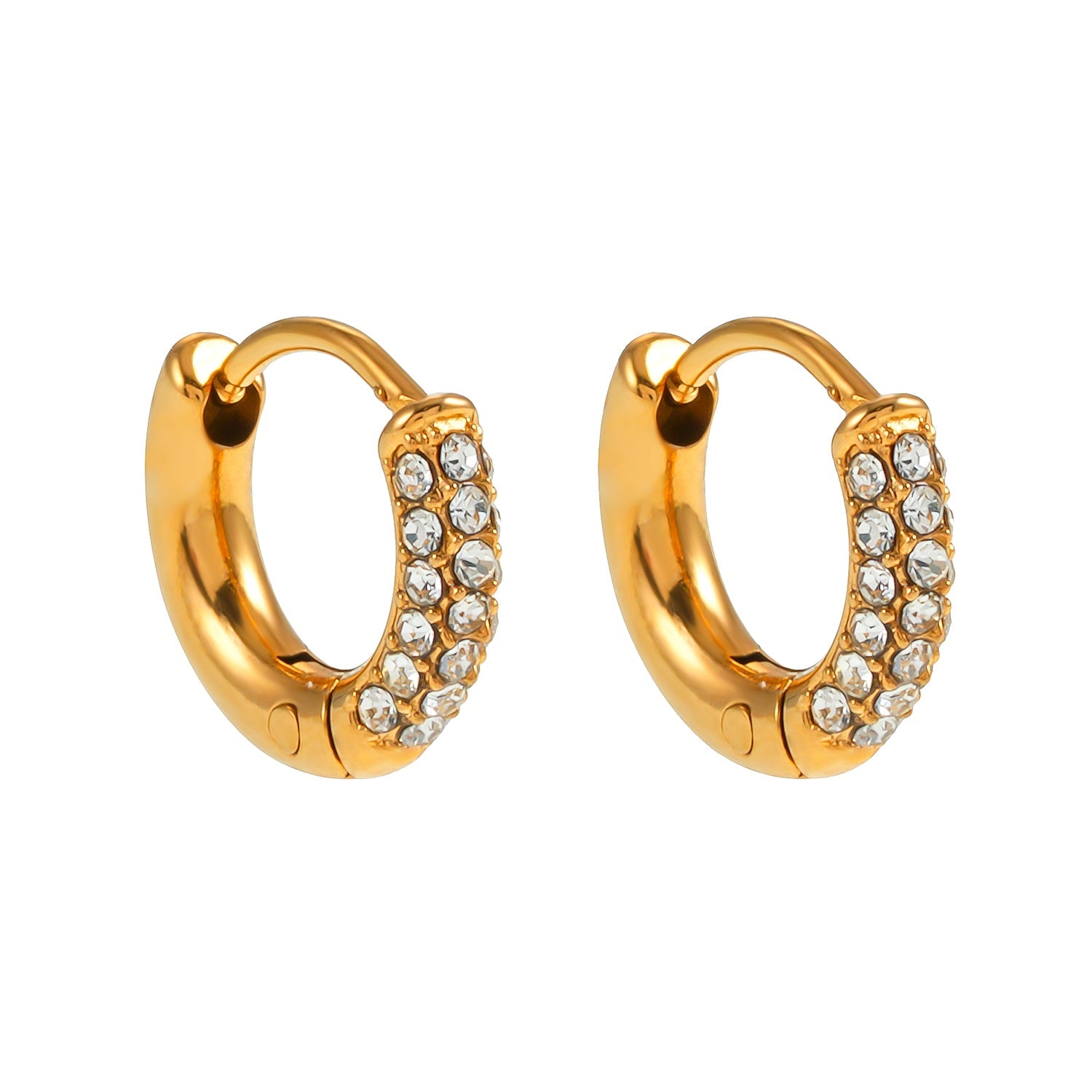 BISHO Gold: Sparkling Rows of Pavé Zirconia on Classic Mini Hoop Earrings