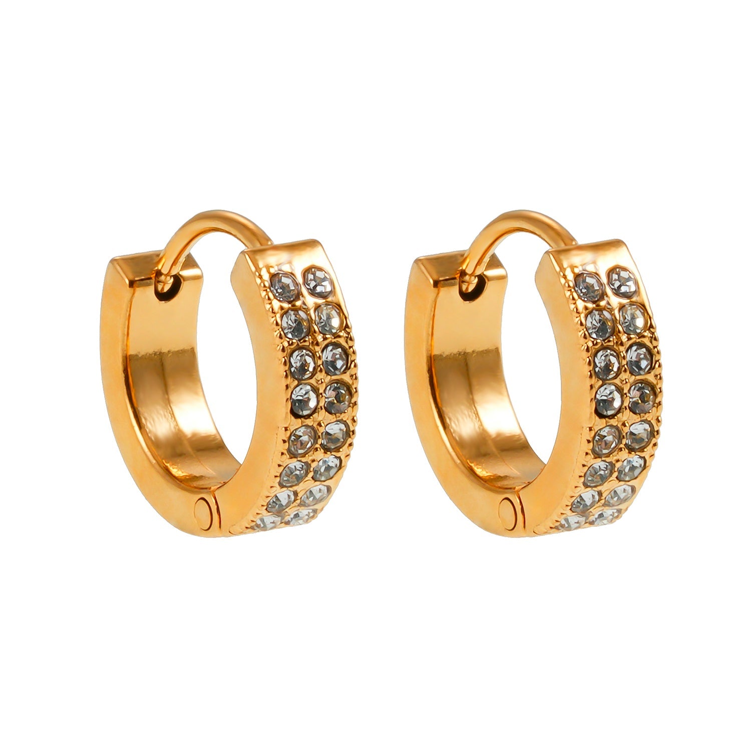 Glam up your day with these gleaming AAA Zirconia gemstone pavé mini hoops. Carefully cut and arranged, these contemporary hoops will add a shine to any outfit.