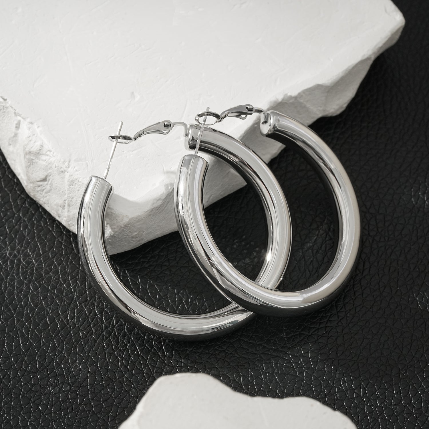 BOBOYI White Gold (Silver Tone): Mid Width Smooth Finish Effortless Day-to-Night Classic Hoops