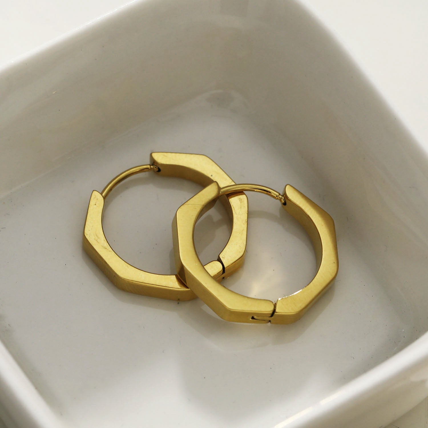 BOLZANO Gold: Hexagon Shaped Contemporary Hoop Earrings