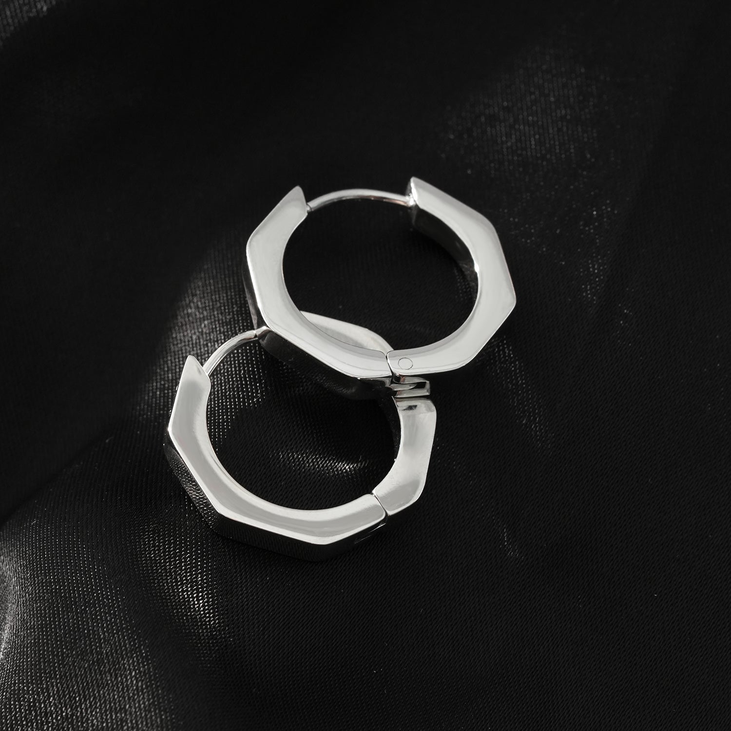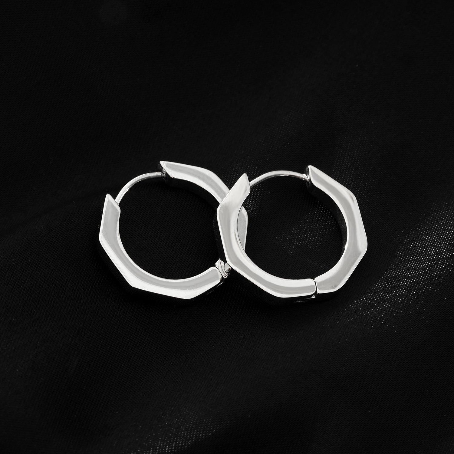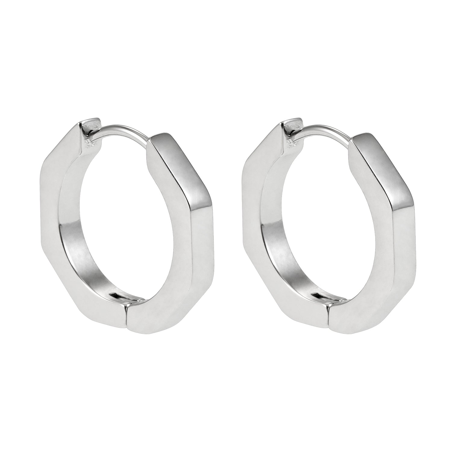 BOLZANO Silver Toned White Gold: Hexagon Shaped Contemporary Hoop Earrings