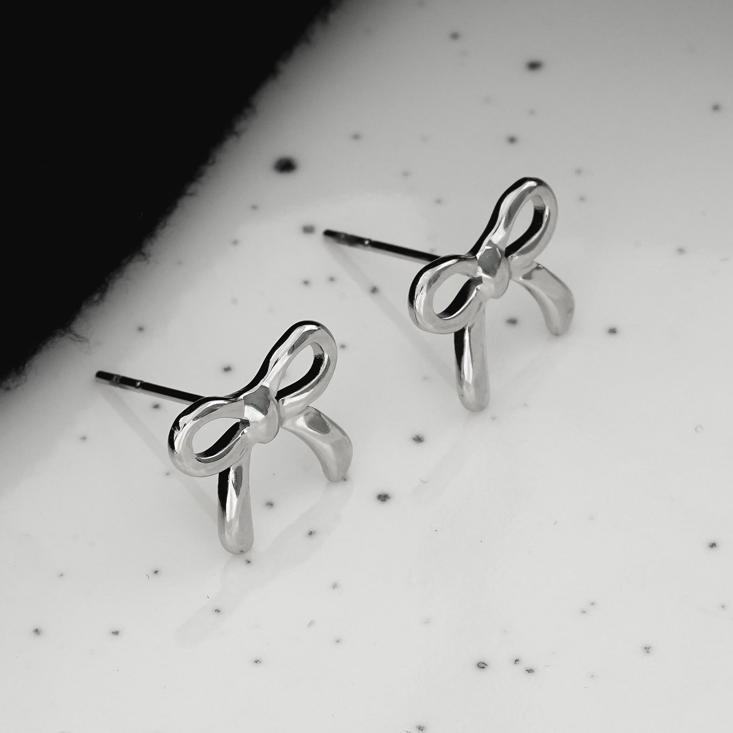 The intricate bow design features textured curves and polished edges, reflecting light beautifully for a subtle yet eye-catching effect. Lightweight and comfortable, the studs are secured with a reliable butterfly back, ensuring they stay in place throughout the day.