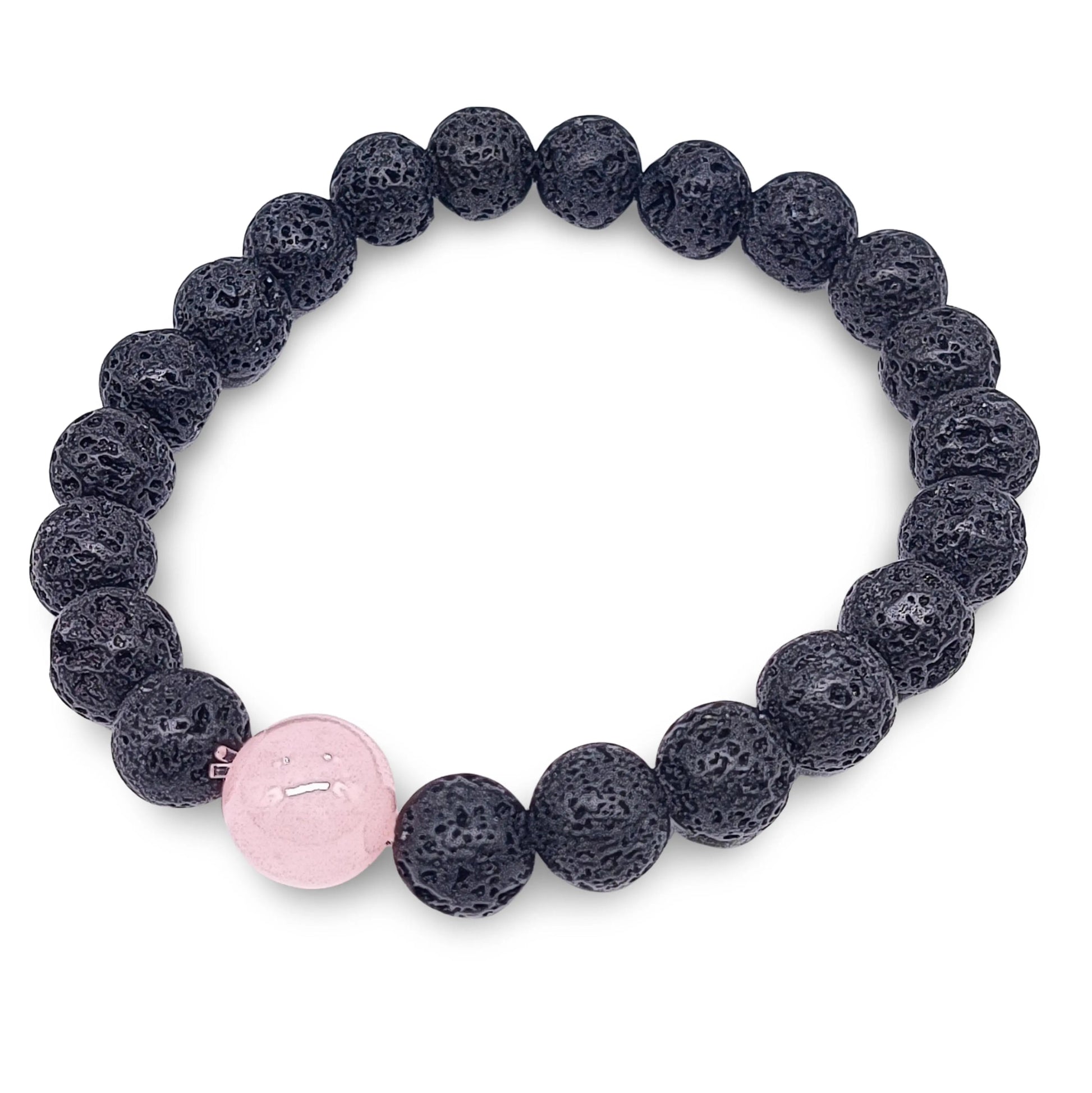 Bracelet - Lava Stone 8mm & Rose Quartz 10mm