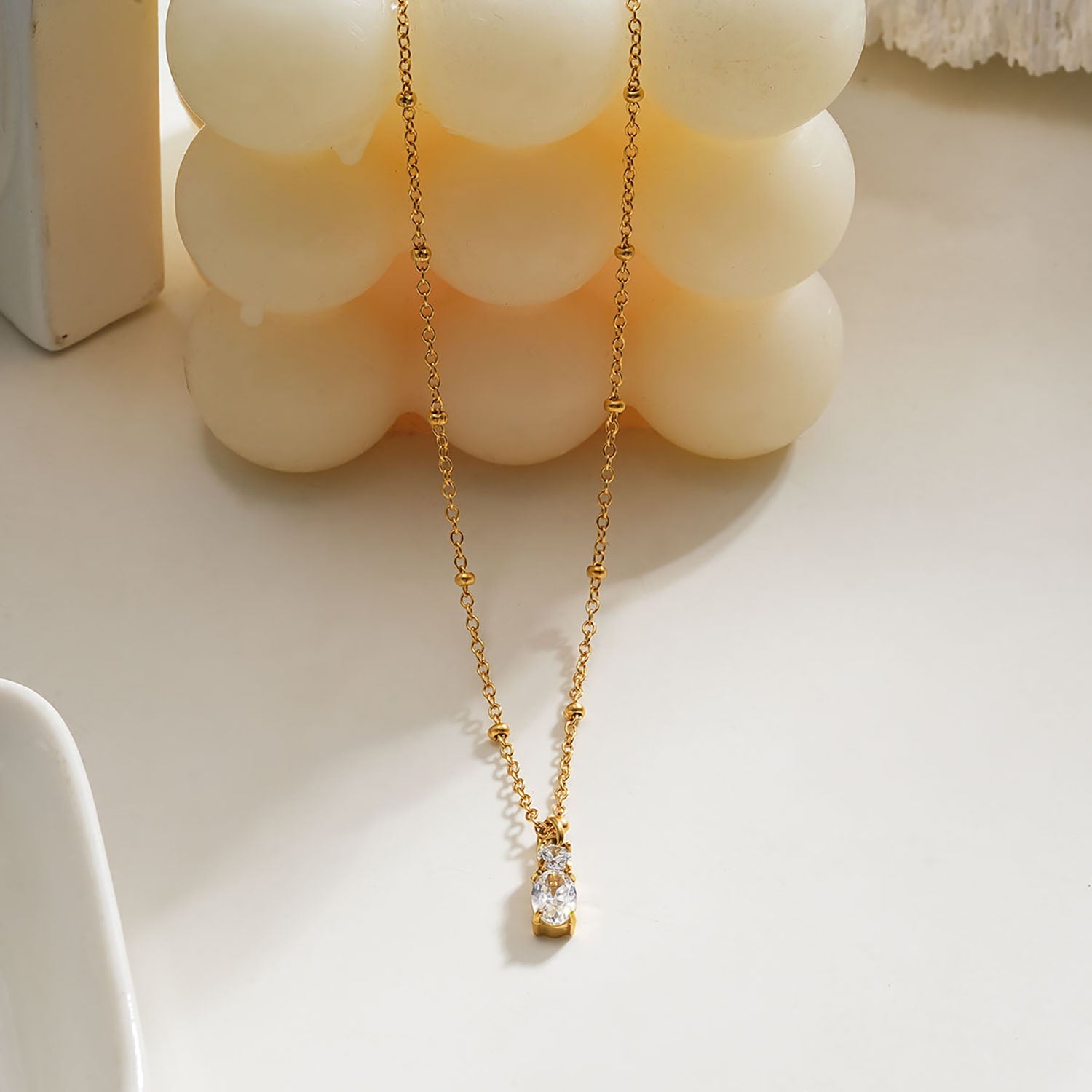 CABBANA Gold: A Duo Set of Zirconia Charm Pendants on a Beaded Chain Necklace
