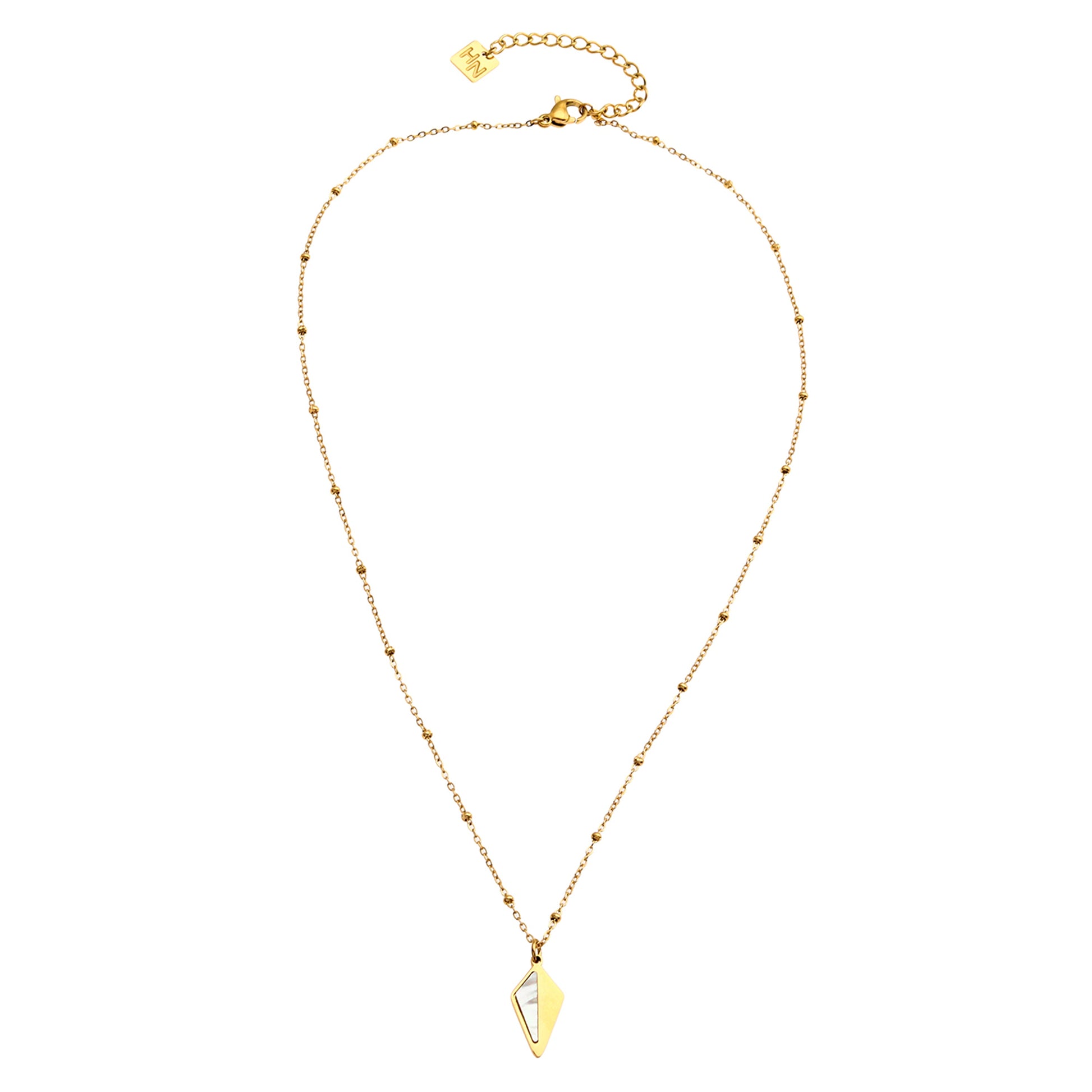 Inspired by clean minimalist lines, this classic dainty necklace is adorned with a geometric diamond shaped pendant made of metal & natural shell. A simple accessory to lift any outfit.