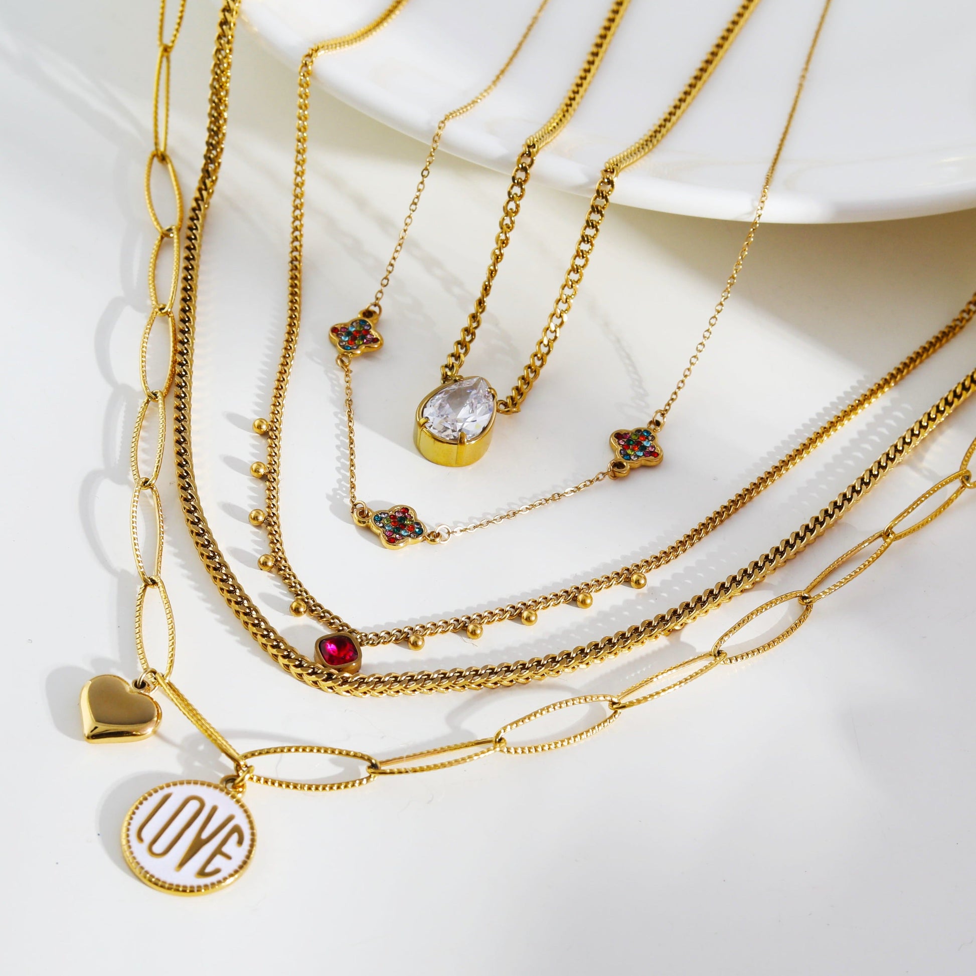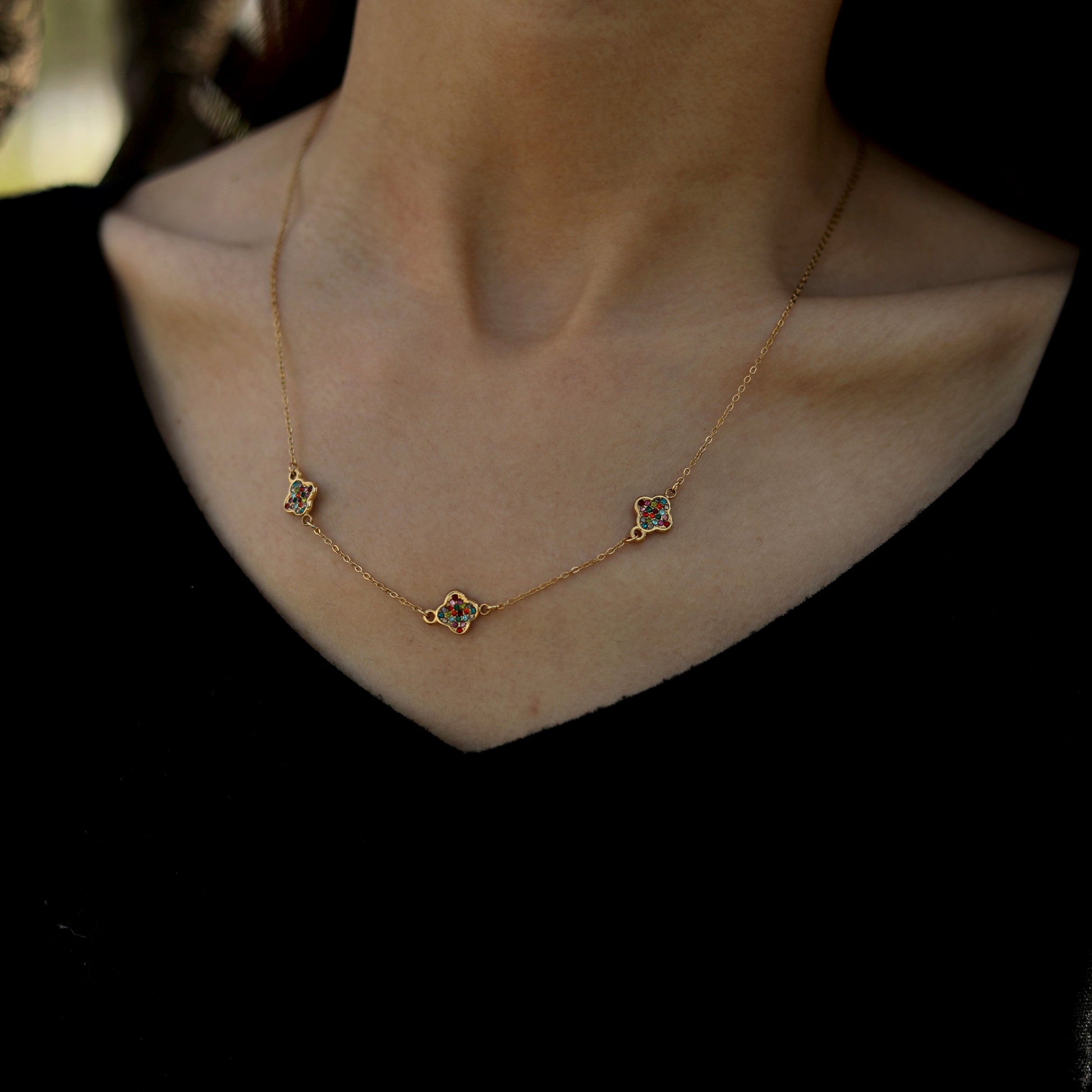 ELLIS Coloured Zirconia Charms Gold Necklace