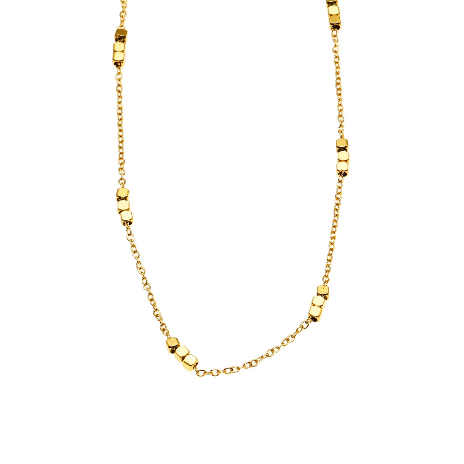 Style: ERISSA 64717 Trio Square-Beads Dainty Gold Chain Necklace Gold Chain Necklace.