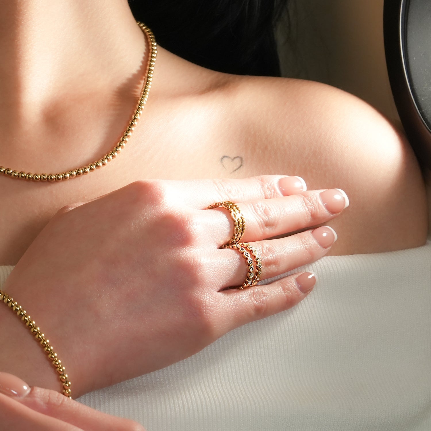 Crafted from a proprietary premium graded base metal; layered in opulent 18 karat pure gold & ultra-luxe silver tone. As adornments we use sustainable natural stone & shell, fresh water pearls and non-conflict AAA zirconia gemstones.