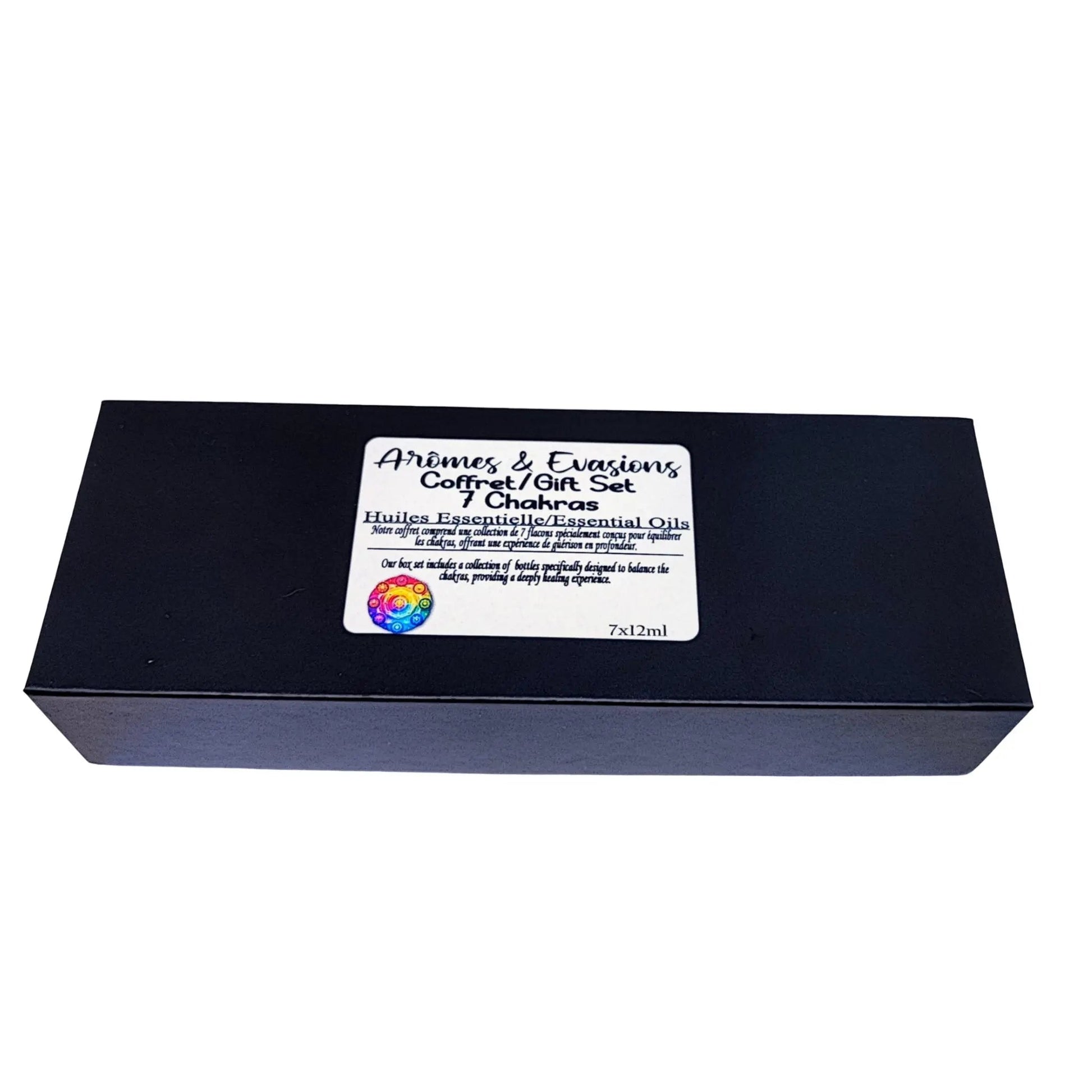 Unveiling the Exclusive 7 Chakras Gift Set from Arômes & Évasions, featuring the Essential Oil Premium Collection! A must-have offering from Aromes & Evasions for anyone seeking a luxurious aromatherapy indulgence.