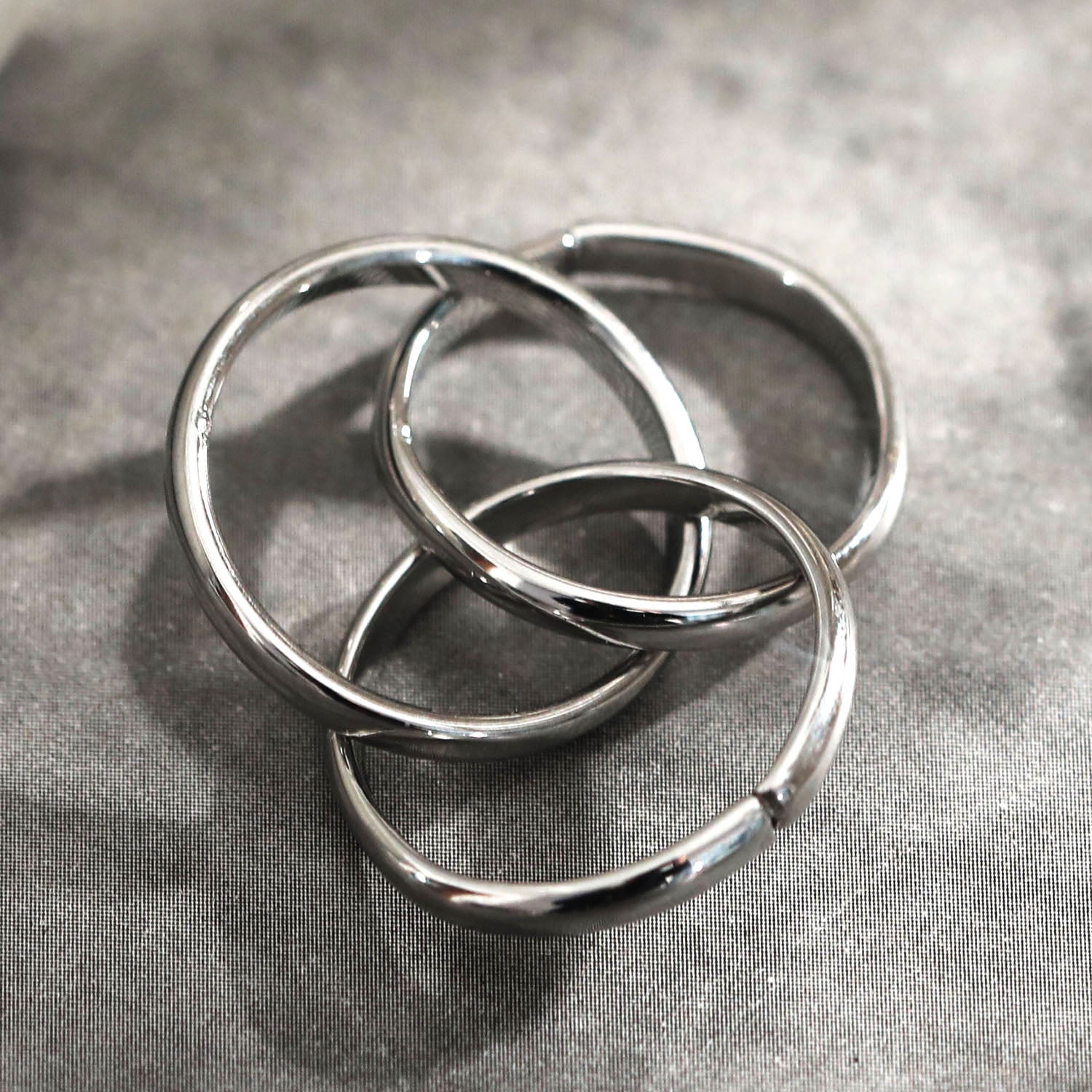 Three interconnected bands equal one very stylish stacked statement ring.