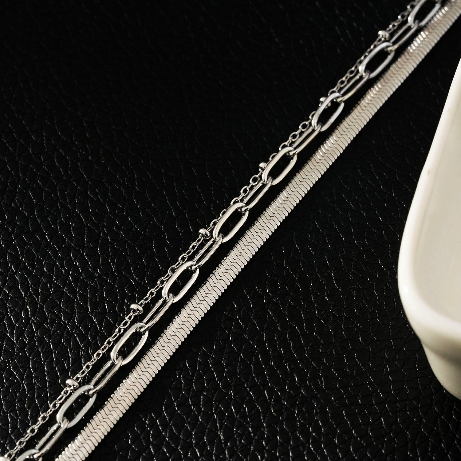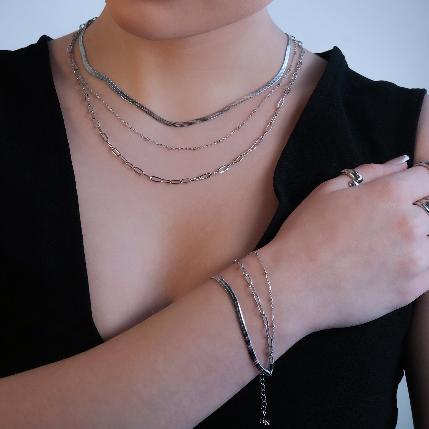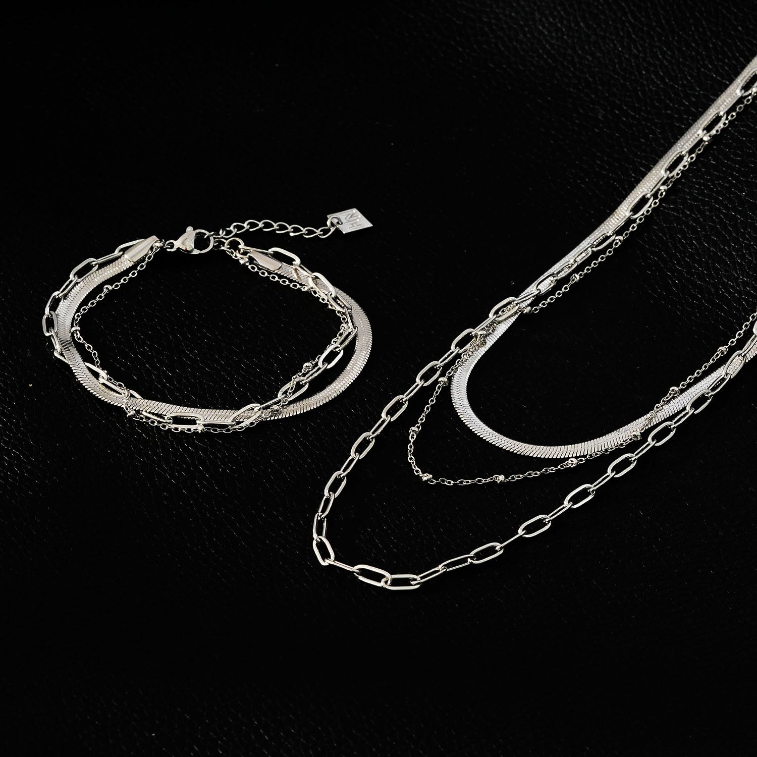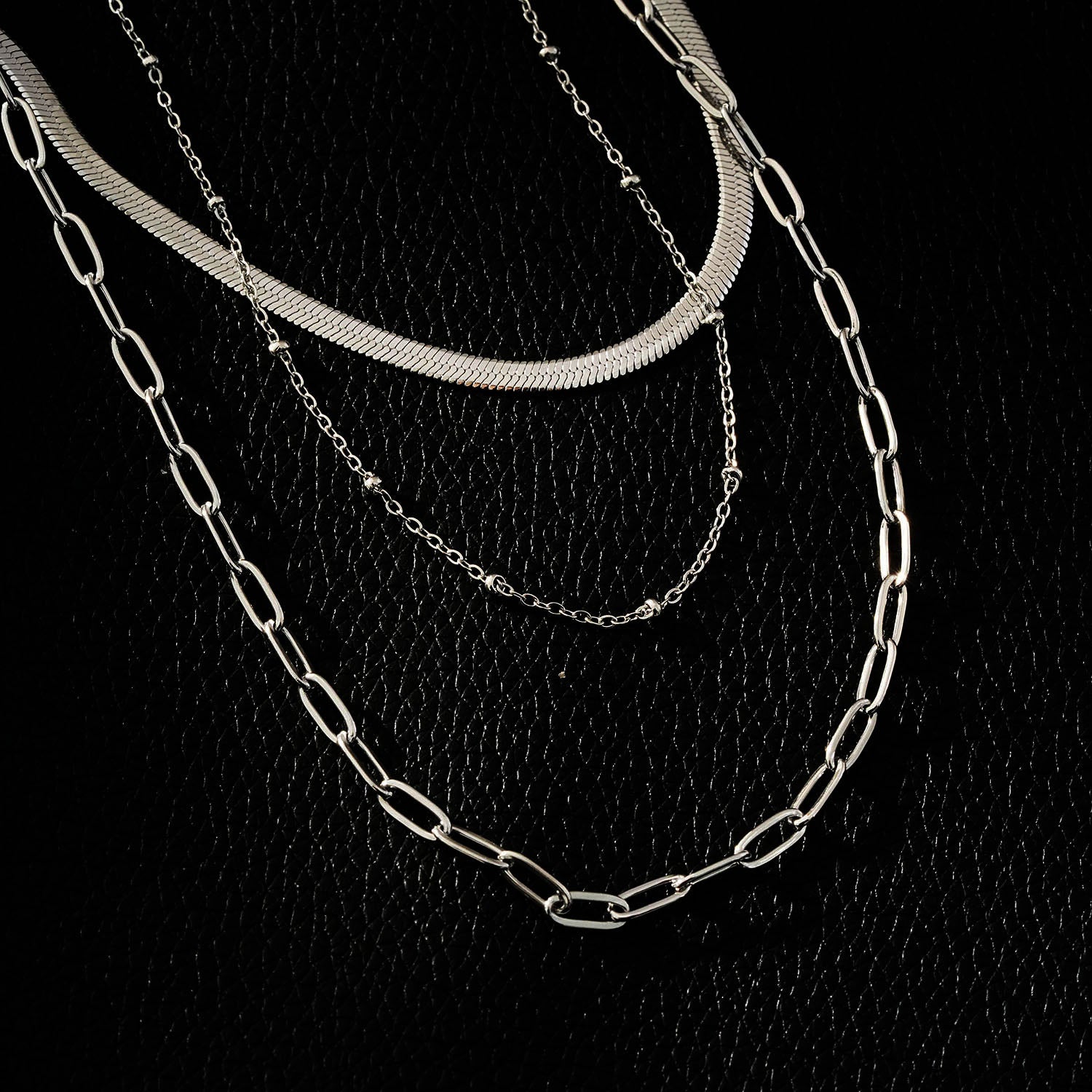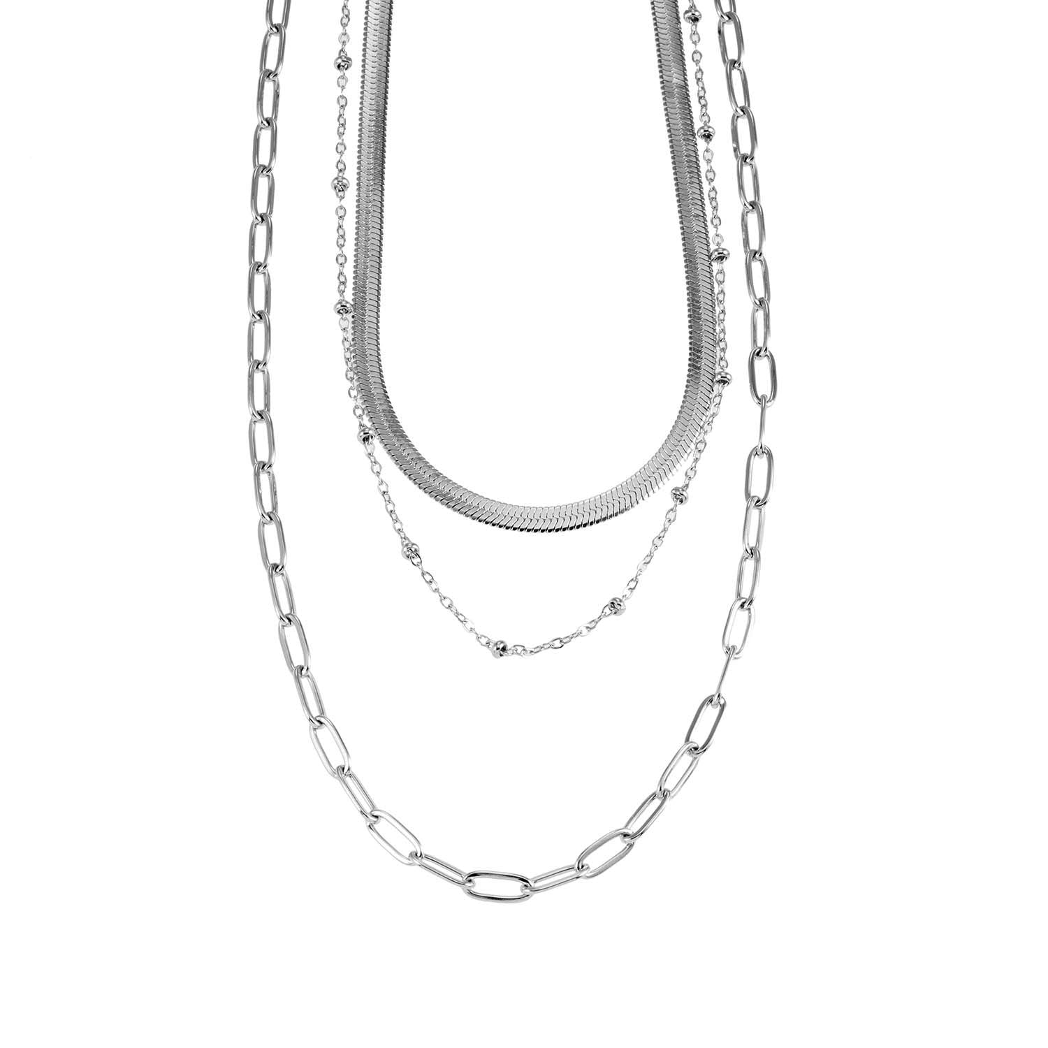 GEILNAR: Triple Layer Mixed-Chain Necklace in Silver