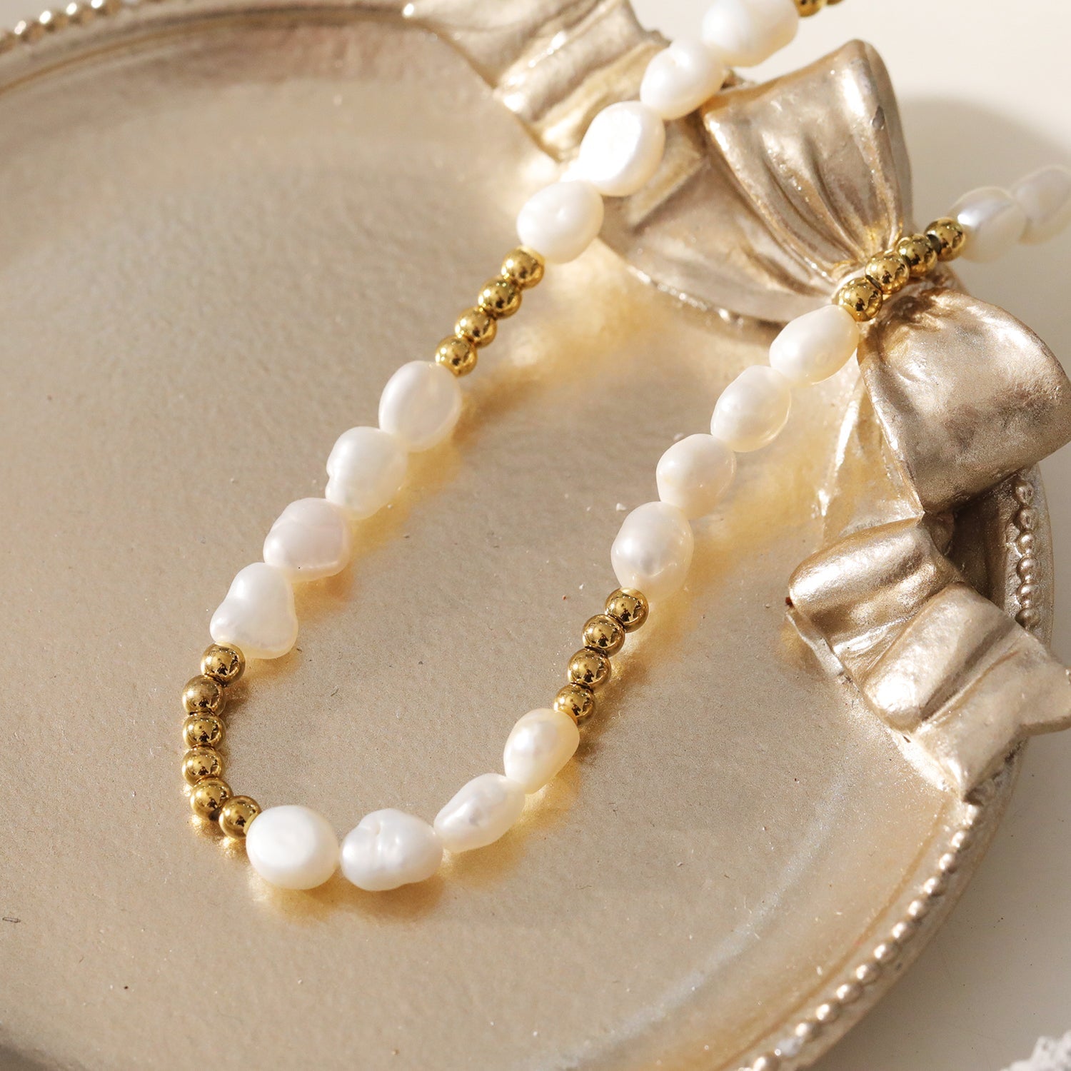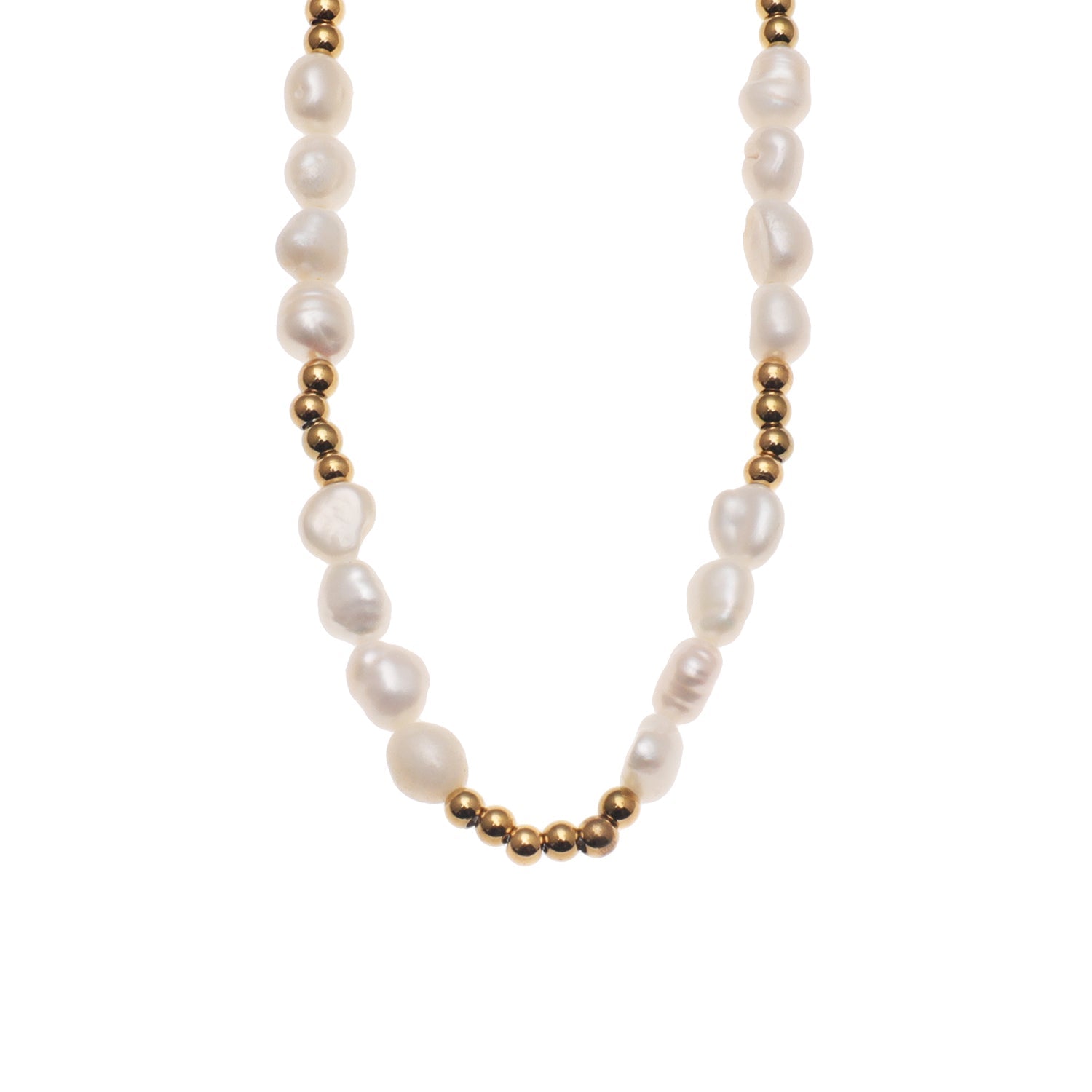 Timeless Simplicity. This necklace captures the essence of understated elegance by intertwining strings of classic pearls and modern ball-beads. The combination speaks to the harmony between traditional and contemporary styles, making it a versatile accessory for a range of occasions, from casual gatherings to formal soirées.