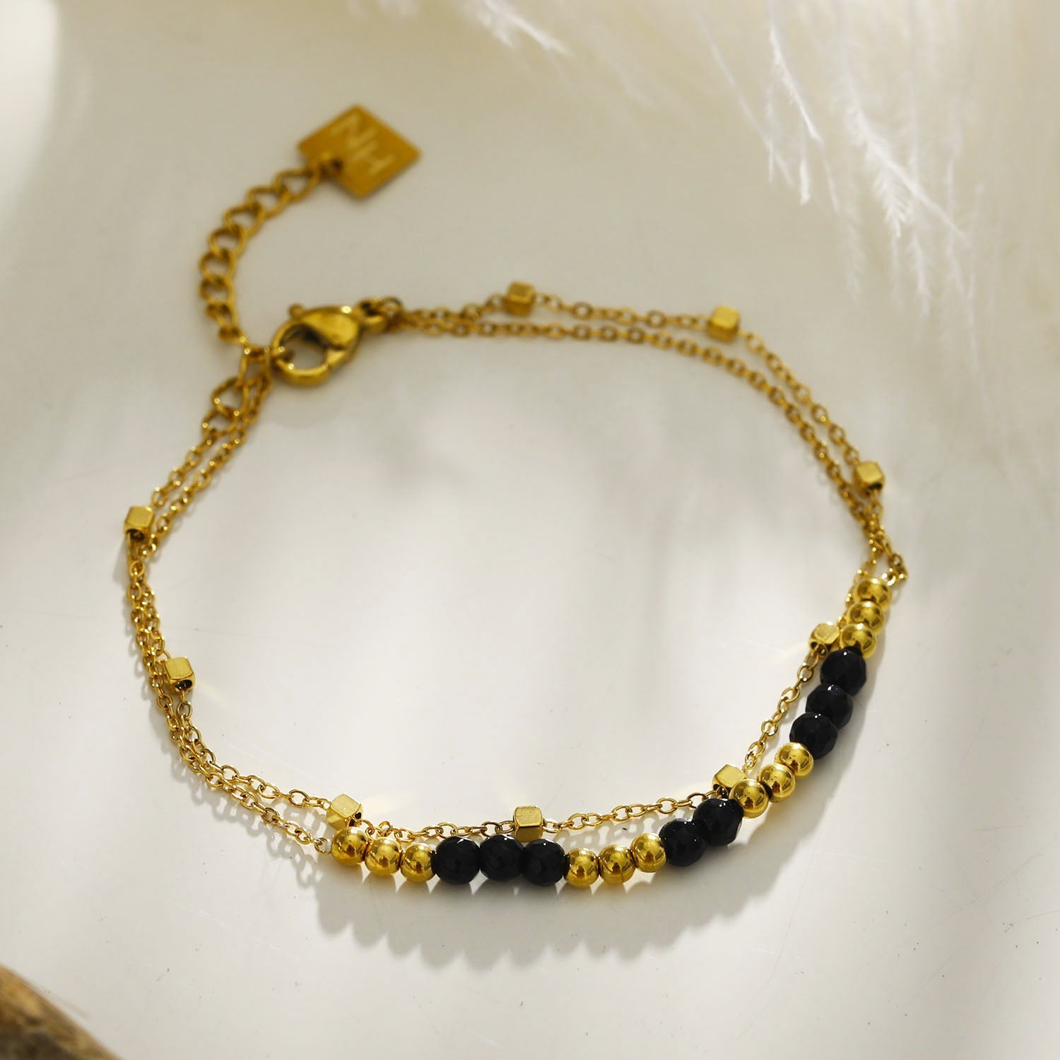 Style: HILDA 221140 Two in One Square Beads & Round Beads in Black & Gold Bracelet.