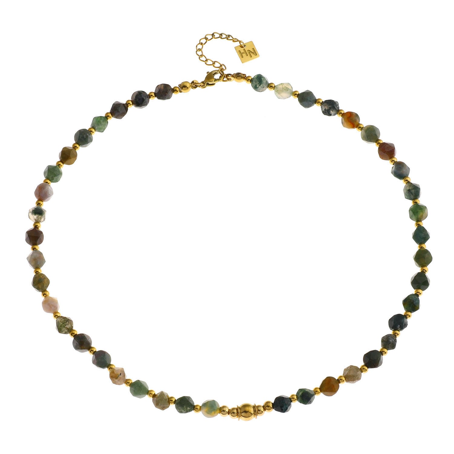 Style: JULIETA 22103: Indian Agate Stones & Gold Beaded Chain Necklace.
