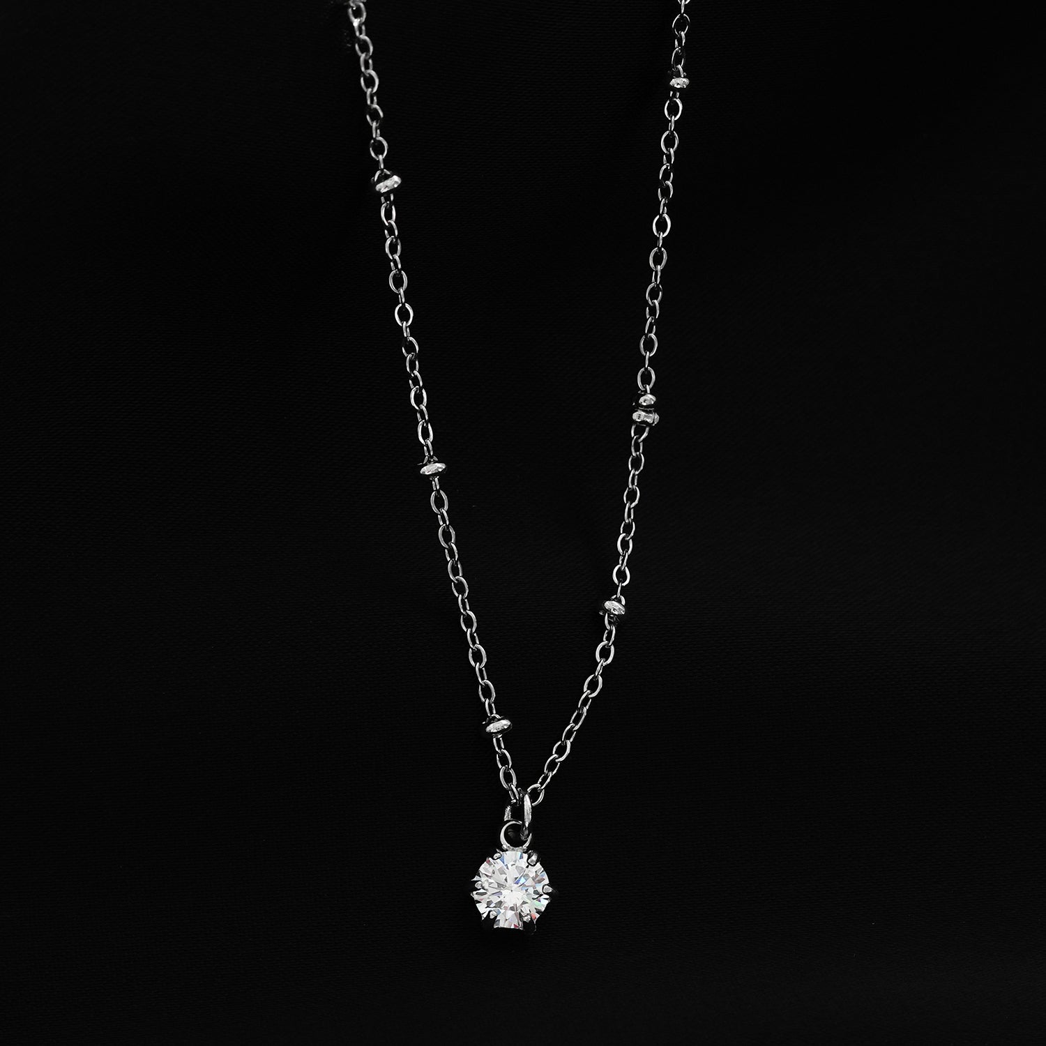 An elegant necklace showcasing a solitaire zirconia pendant that creates a mesmerizing play of light, bringing a brilliant and eye-catching element to your look.