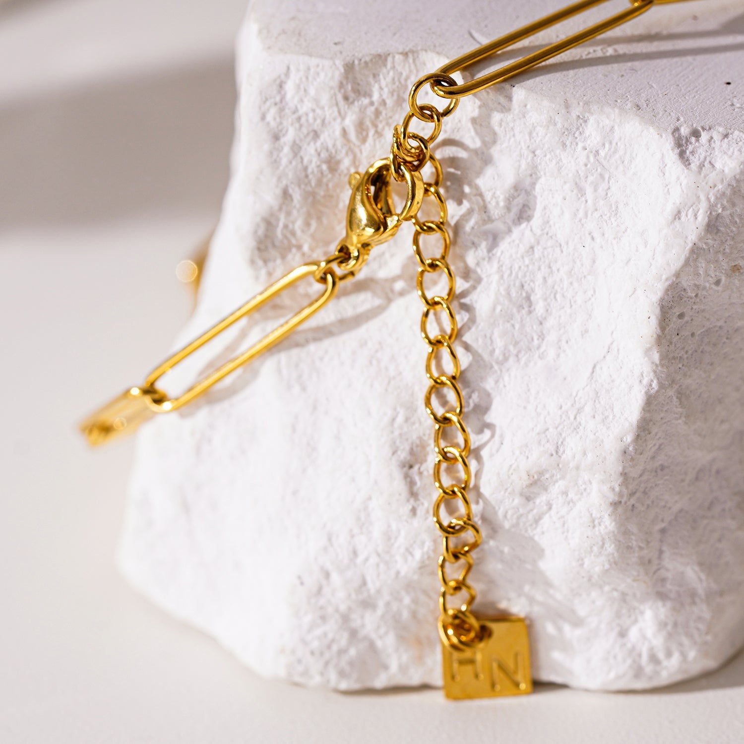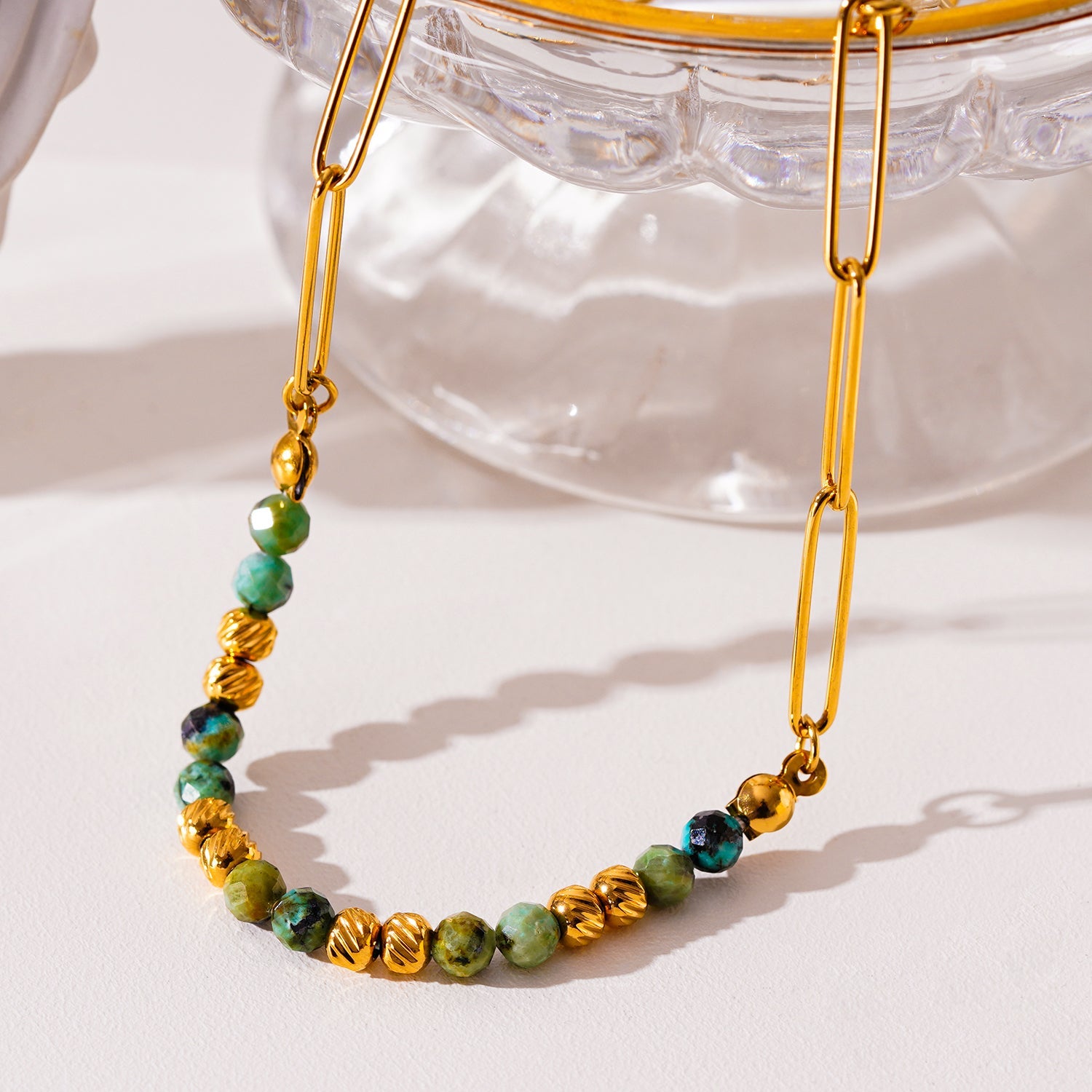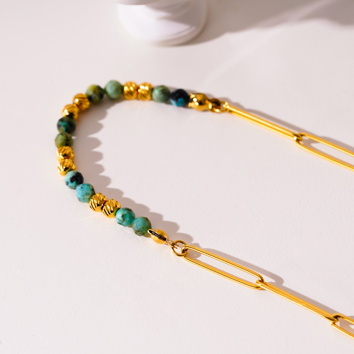 LAIMA: African Turquoise Stones & Gold Beaded Paper-Clip Chain Necklace