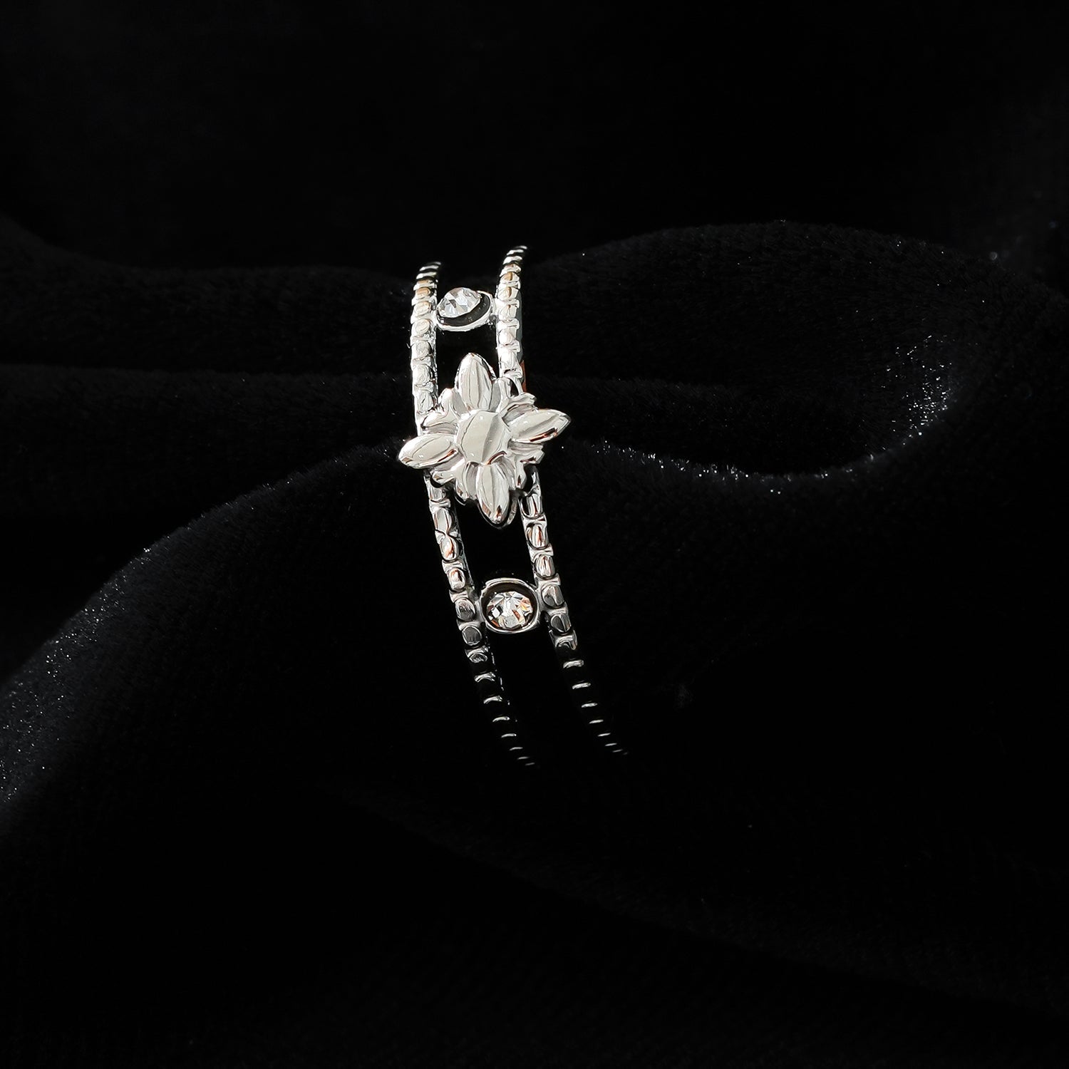 MICHELE White Gold (Silver Toned): Vintage Inspired Double Stacked Ring.