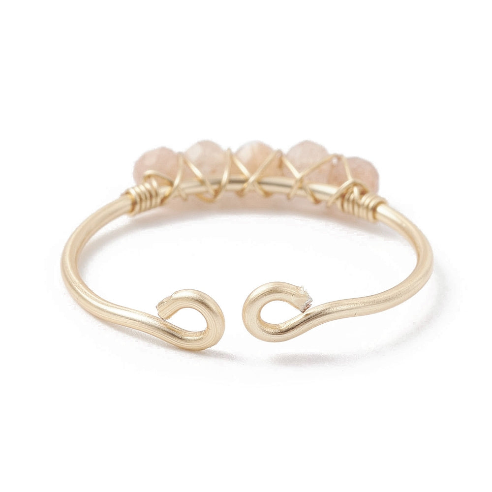 Ring - Copper Wire Wrapped - Natural Sunstone - Adjustable