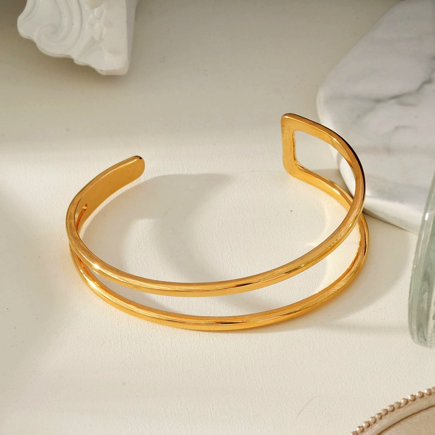 ROSARA Gold: Minimalist-Chic Double Band Bracelet