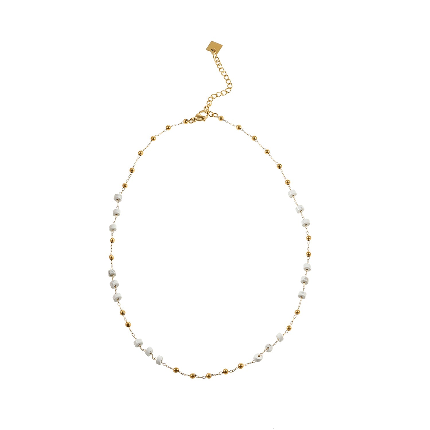 SANTA CRUZ White: Gold & White Stone Beaded Chain Necklace