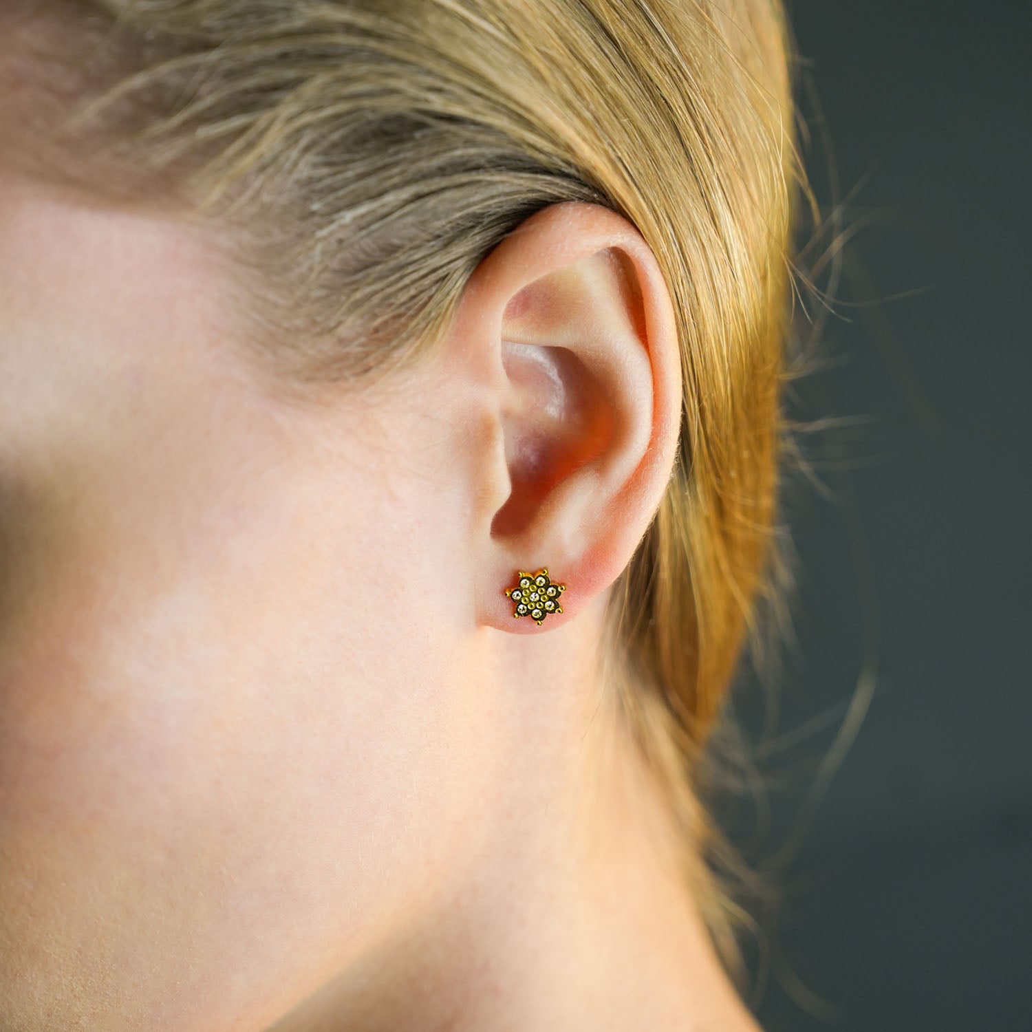 Be a star in these zirconia embedded celestial stud earrings with a twinkle. The surface design detail adds a radiant touch.