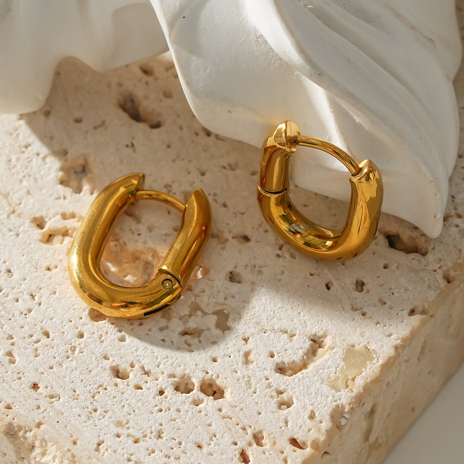 A modern take on the hoop earrings. These rectangular hoops with rounded corners will add a new option to your style arsenal.