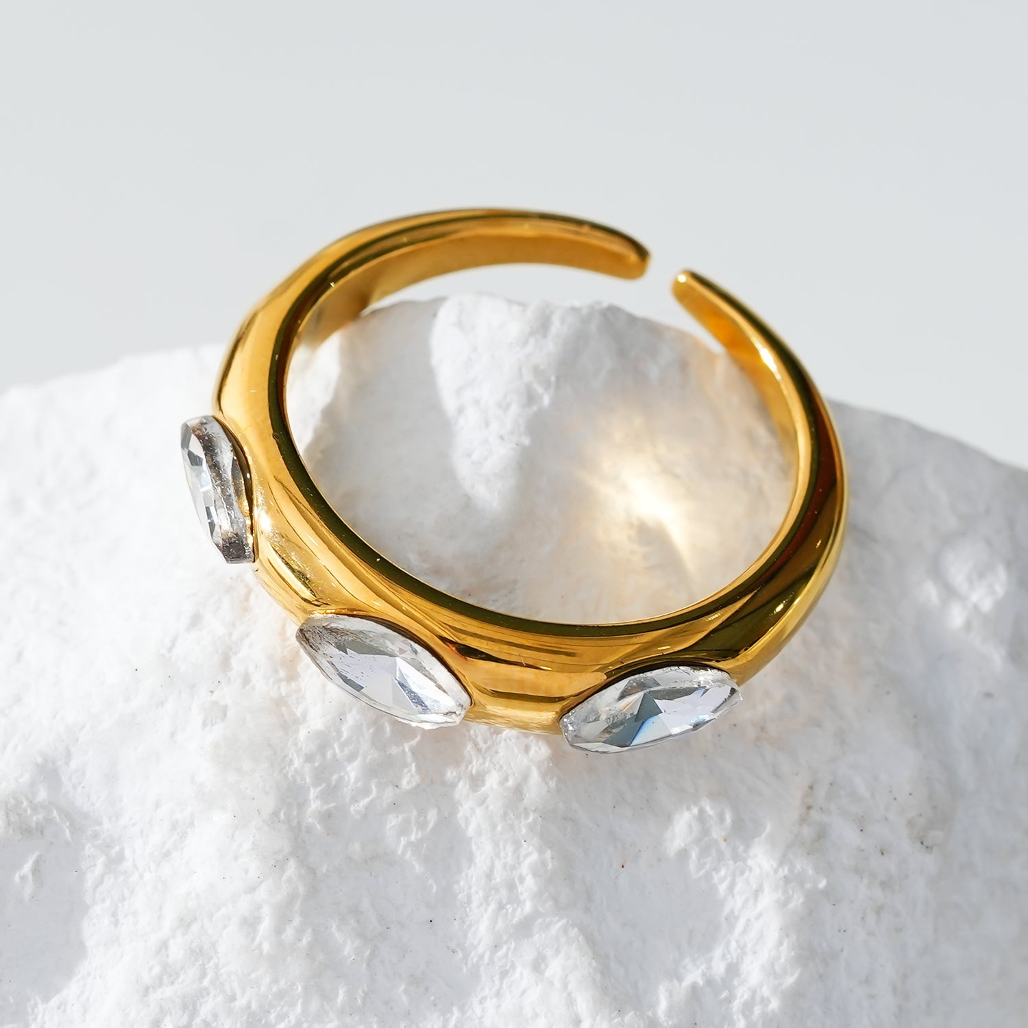 The prominent triple zirconia gemstones take centre stage, adding a touch of luxury to your everyday ensemble.
