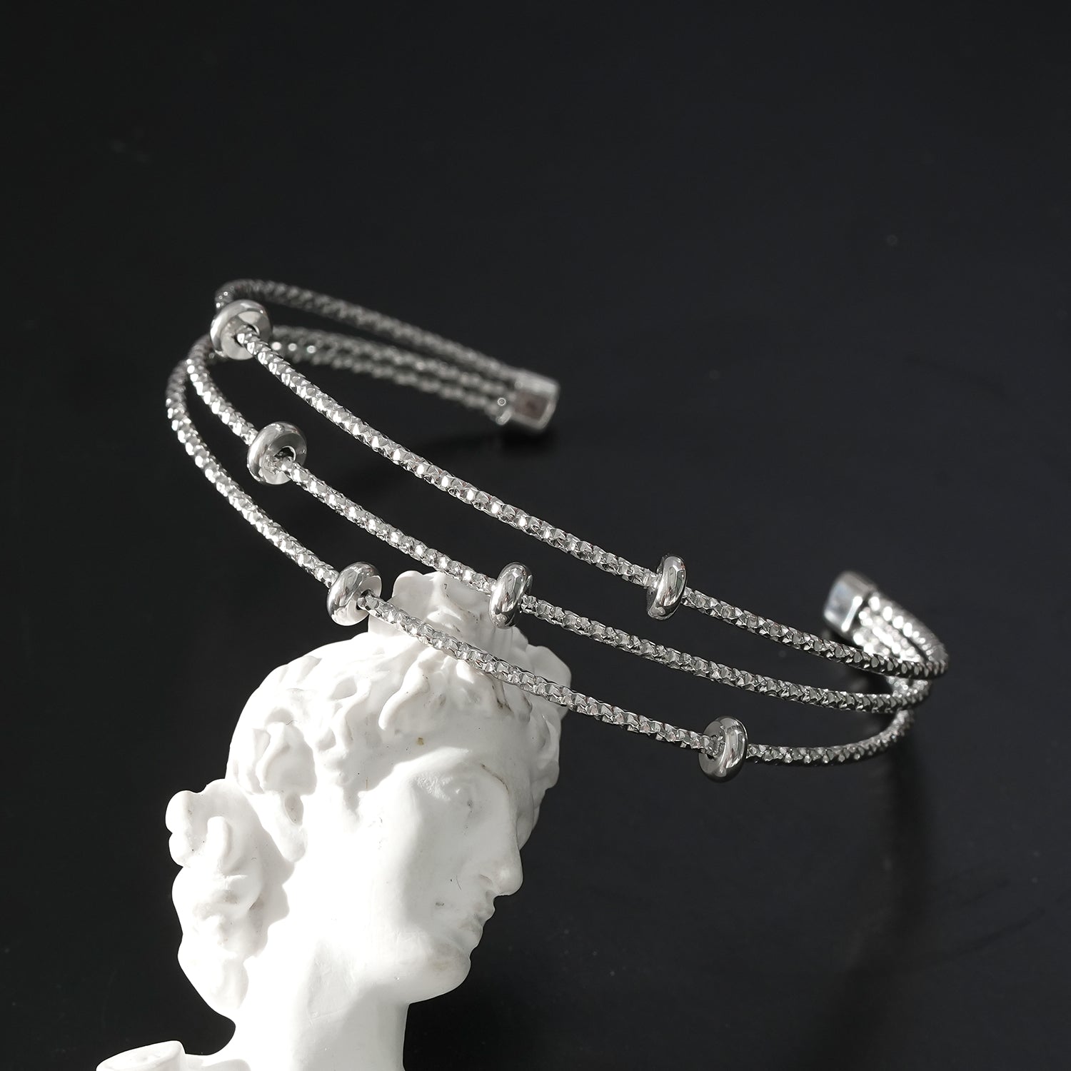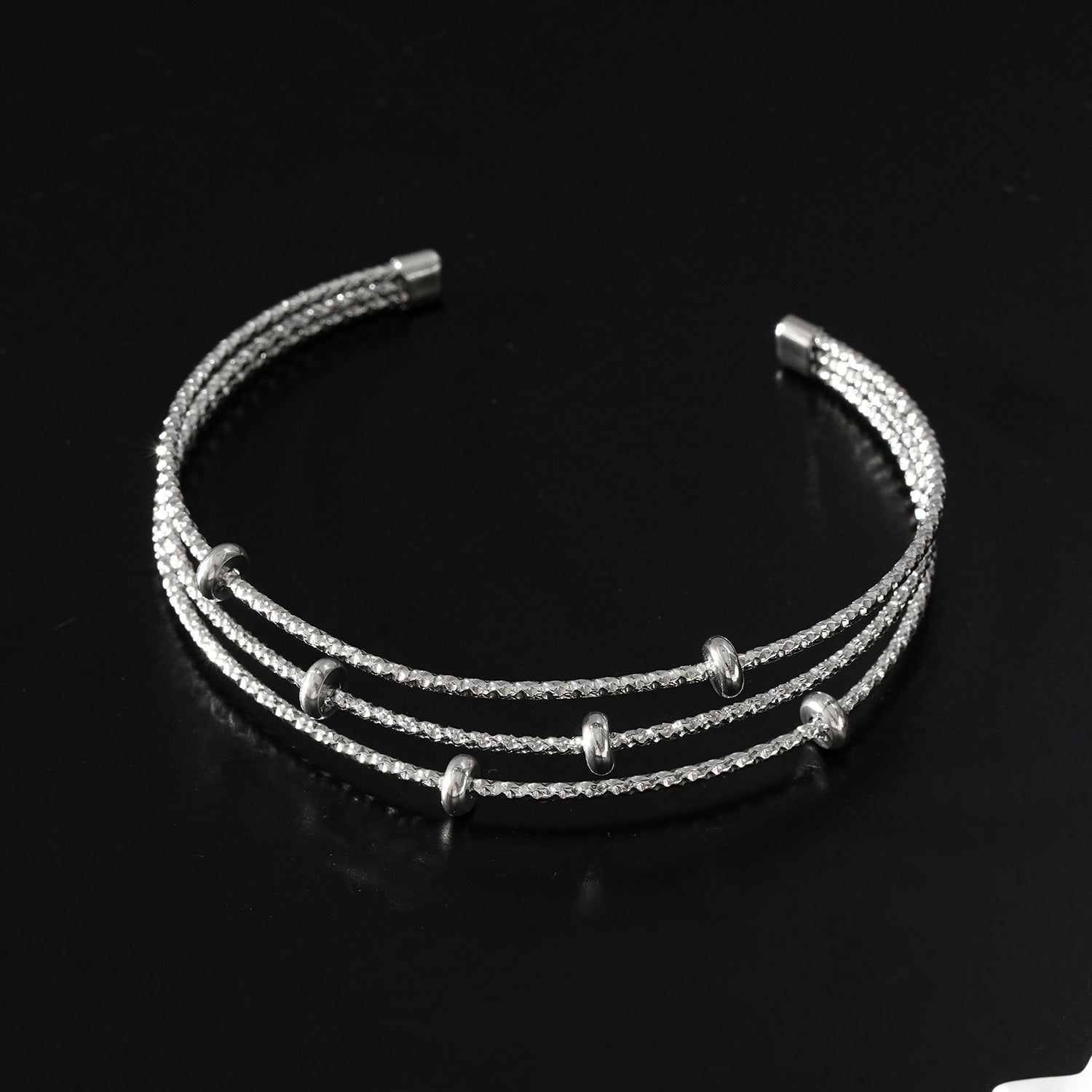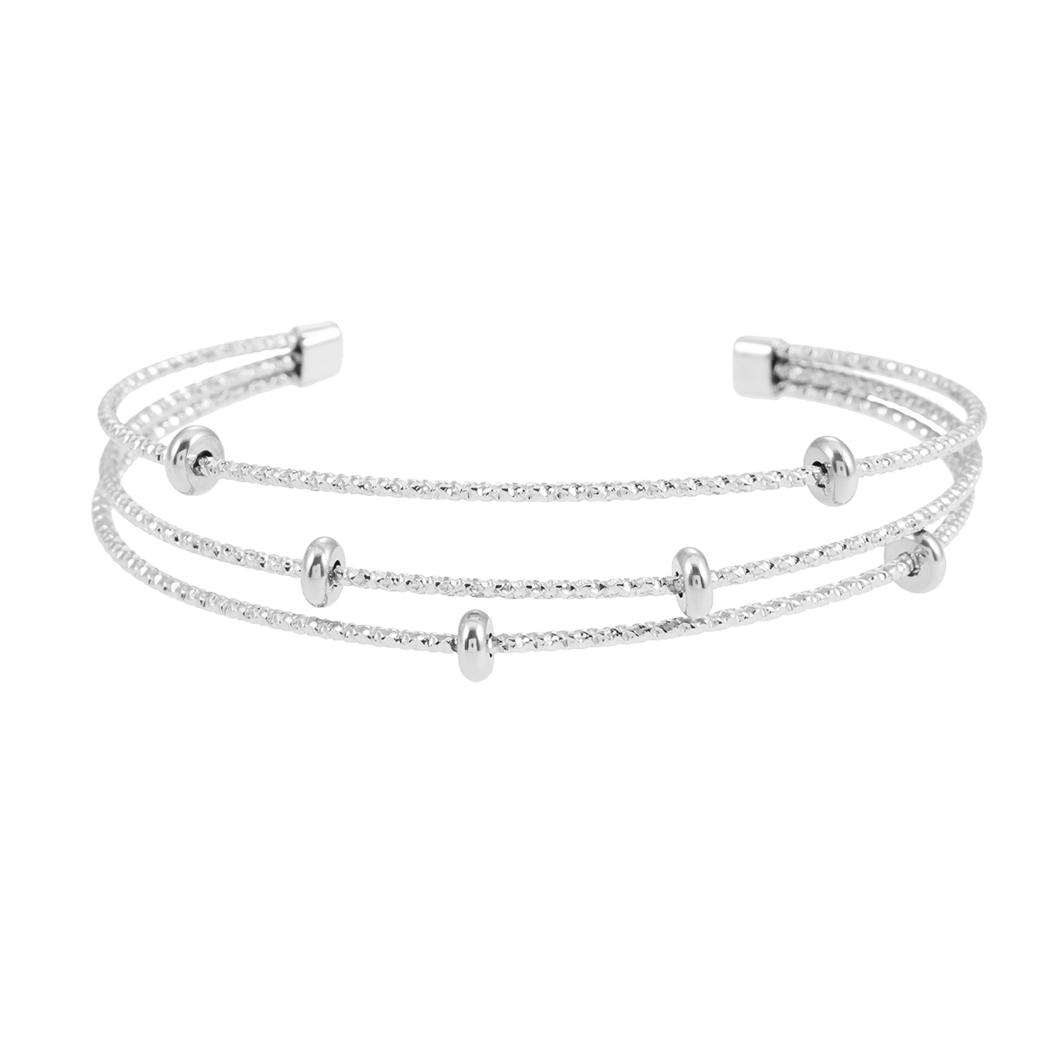Style FARZIKA Silver: Triple Stacked Textured Beaded Bracelet