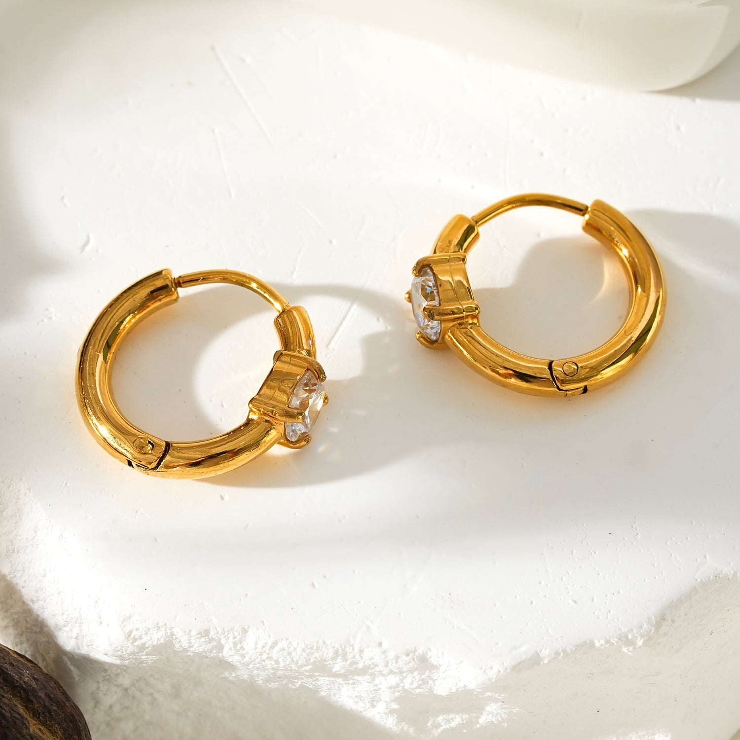 - Ethical Moissanite Stone: Each hoop is adorned with a single, dazzling moissanite gemstone, providing the brilliance of a diamond without the ethical concerns.
