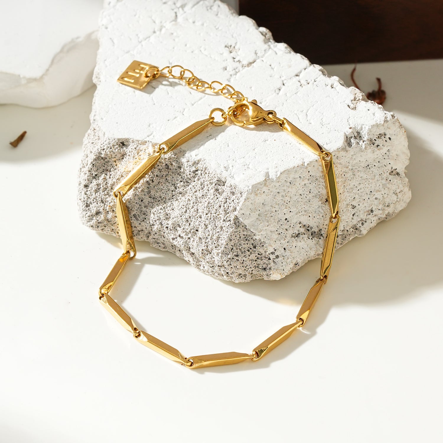 Style ITARSI Gold: Minimalist Geometric Shaped Beaded Chain Bracelet