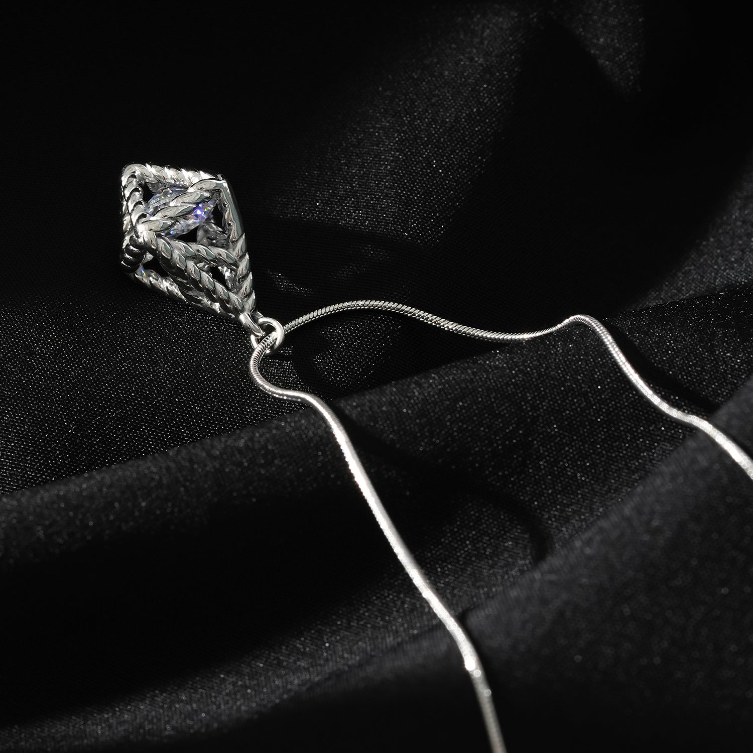 Style KARJAT: Silver (White Gold) Chain Necklace with Geometric Caged Zirconia Pendant