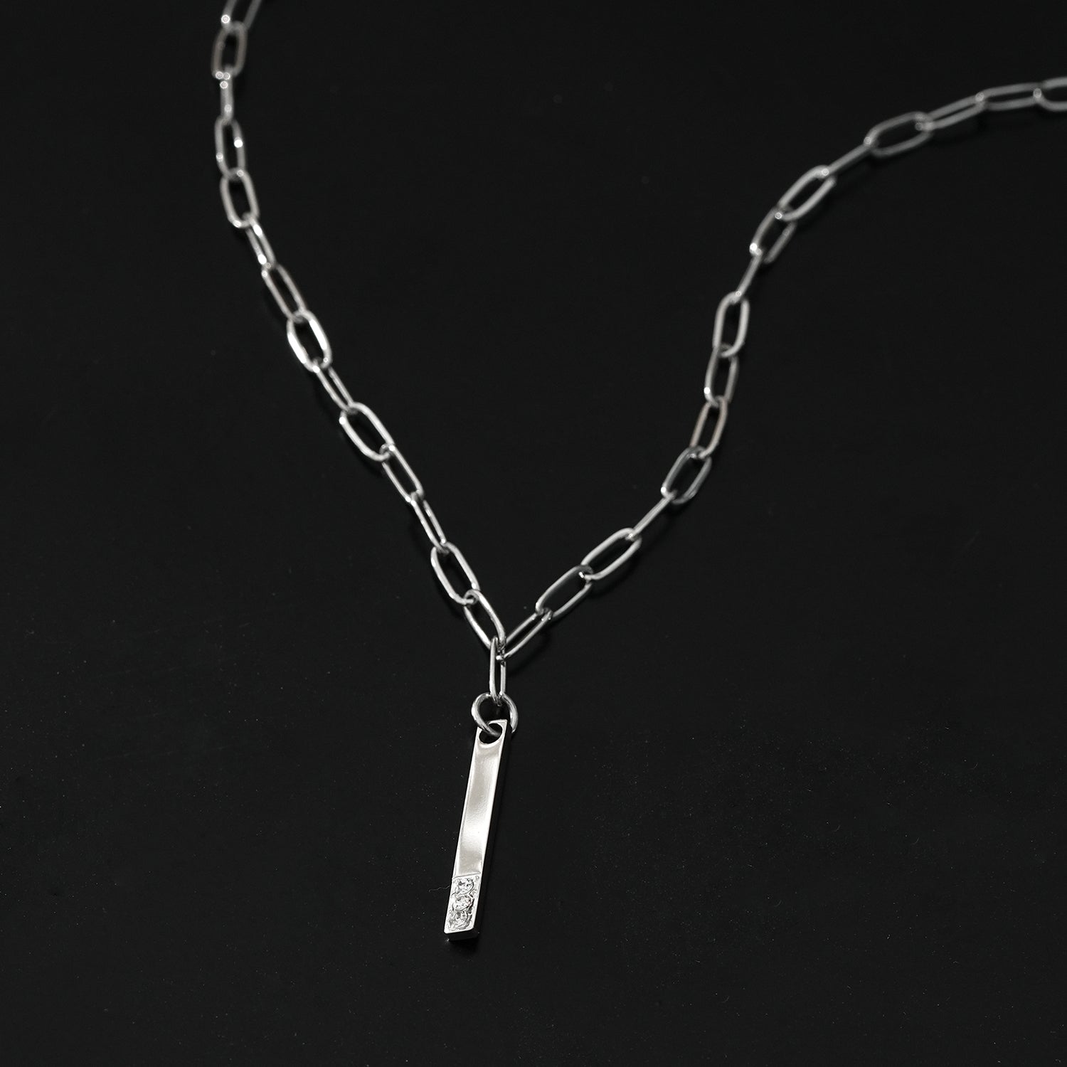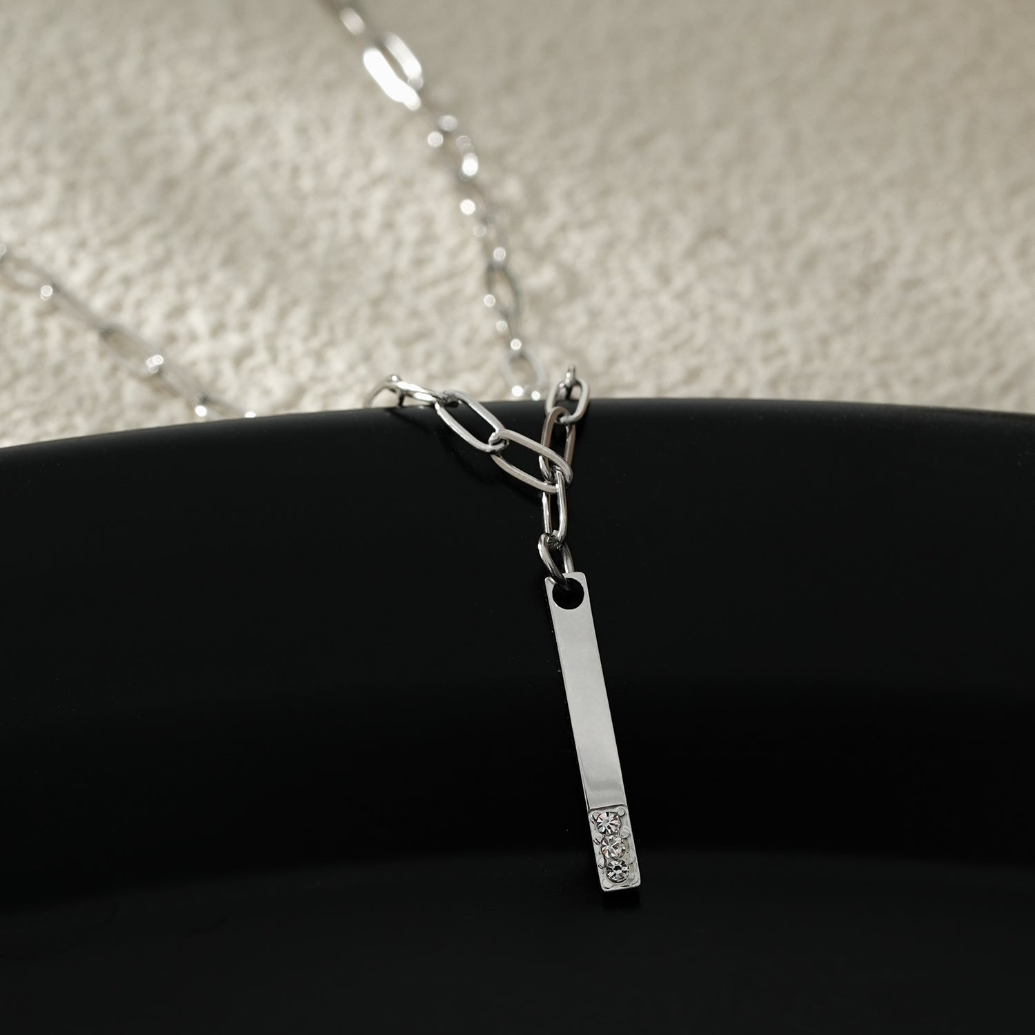 Elevate your style with our exquisite Minimalist Chain Necklace, featuring a unique mini paperclip chain and a striking matchstick rectangle pendant charm. This pendant is embedded with a trio of sparkling AAA zirconia gemstones, offering a cruelty-free and ethically sourced alternative that mimics the brilliance of diamonds.
