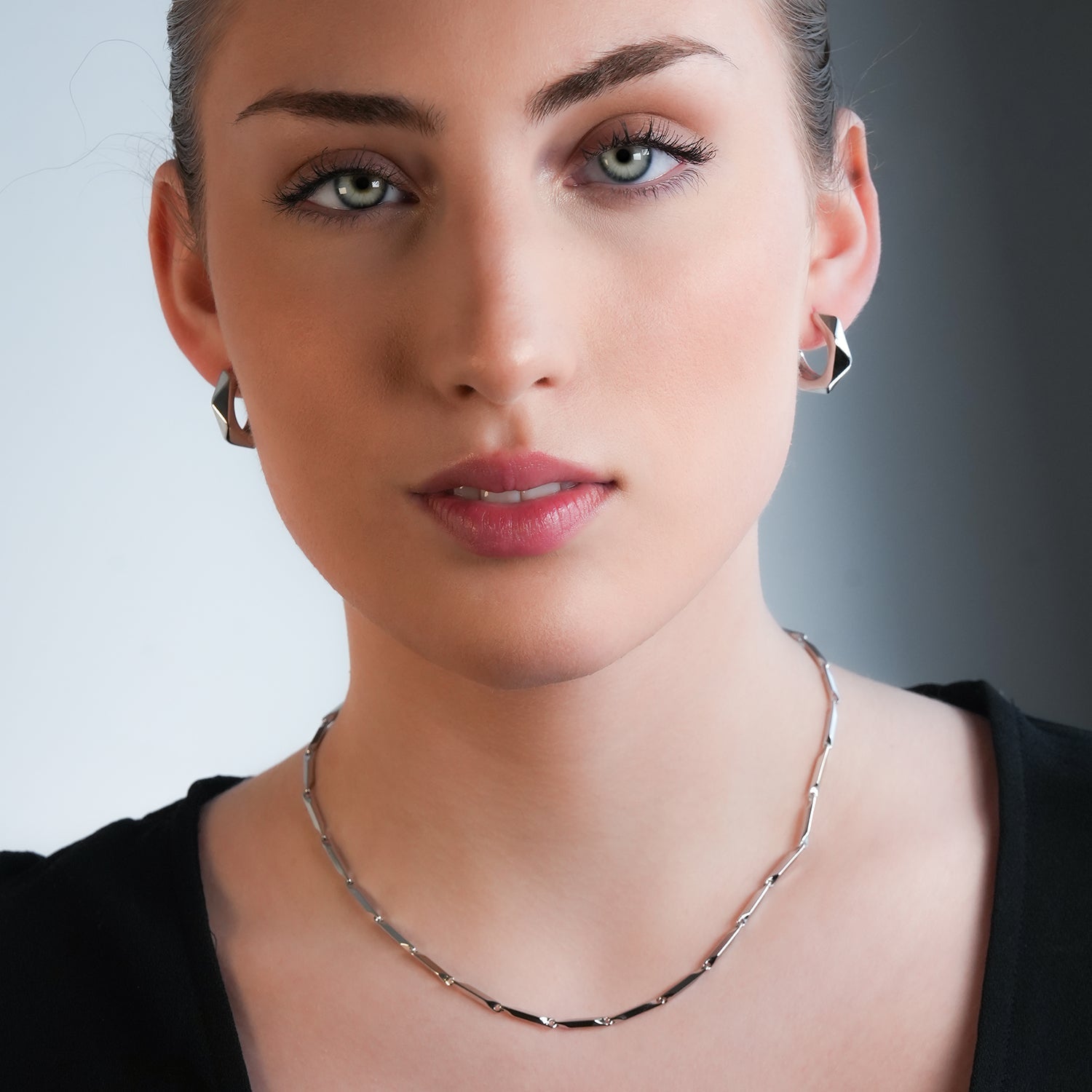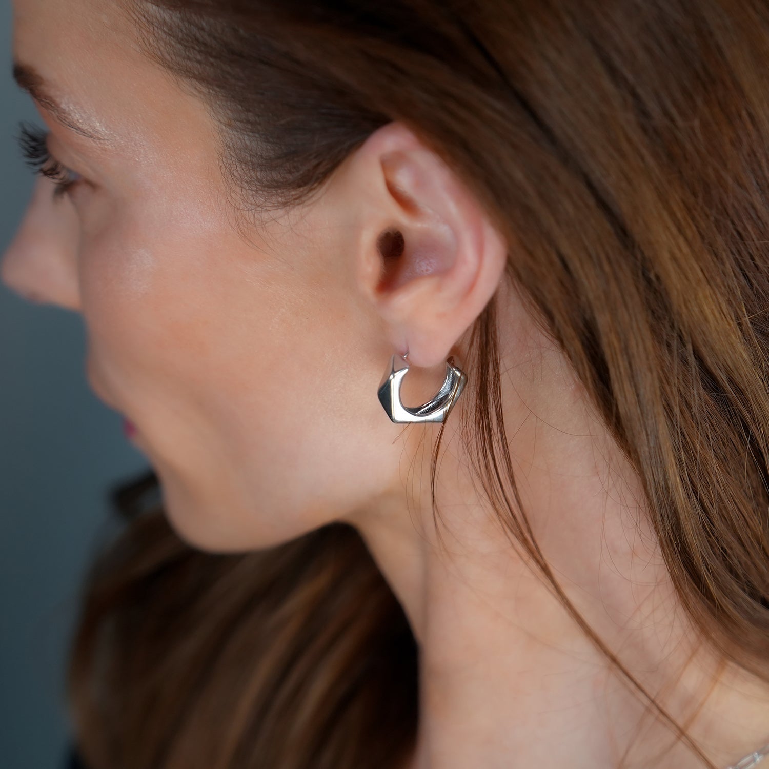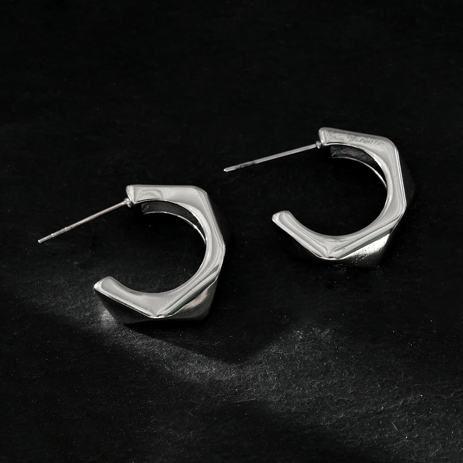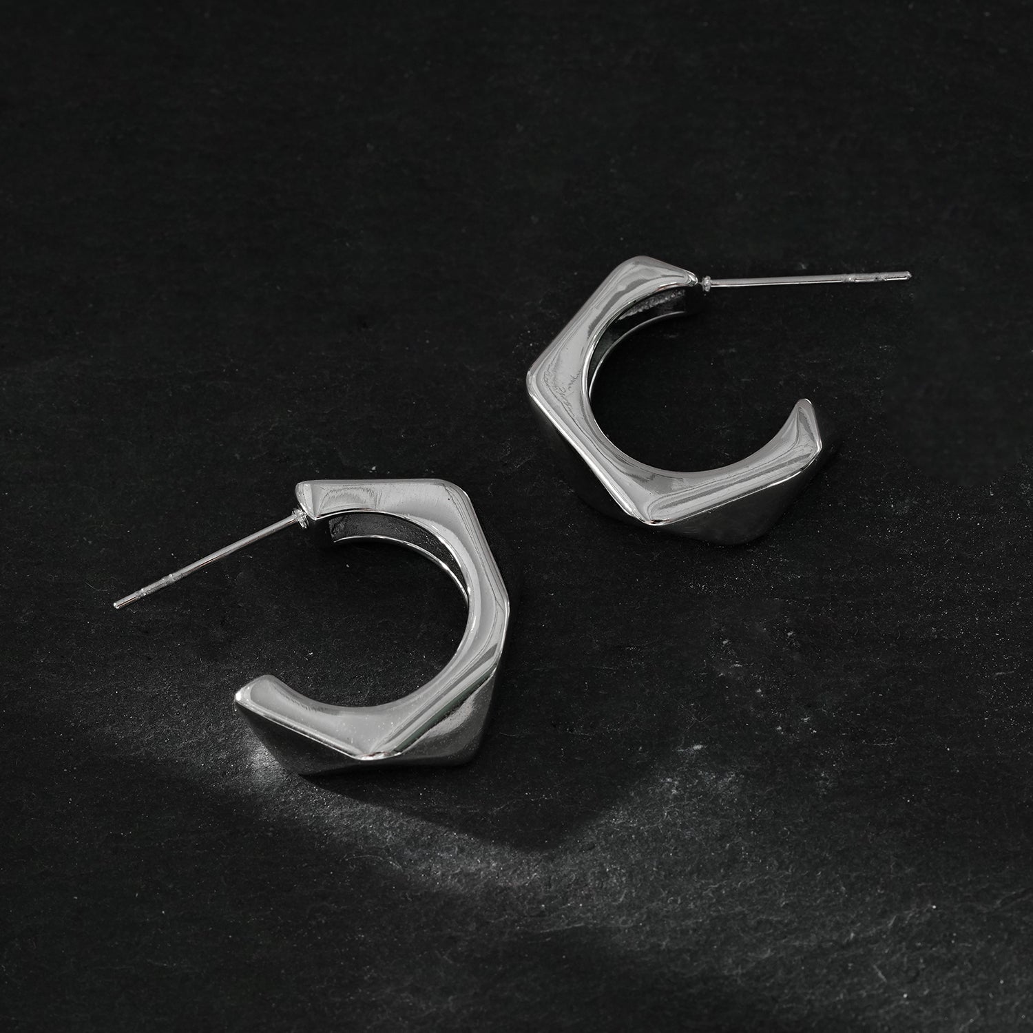 Q: How should I care for my geometric hoop earrings? A: Simply clean with a soft cloth and store in the provided packaging when not in use to maintain their shine and quality.