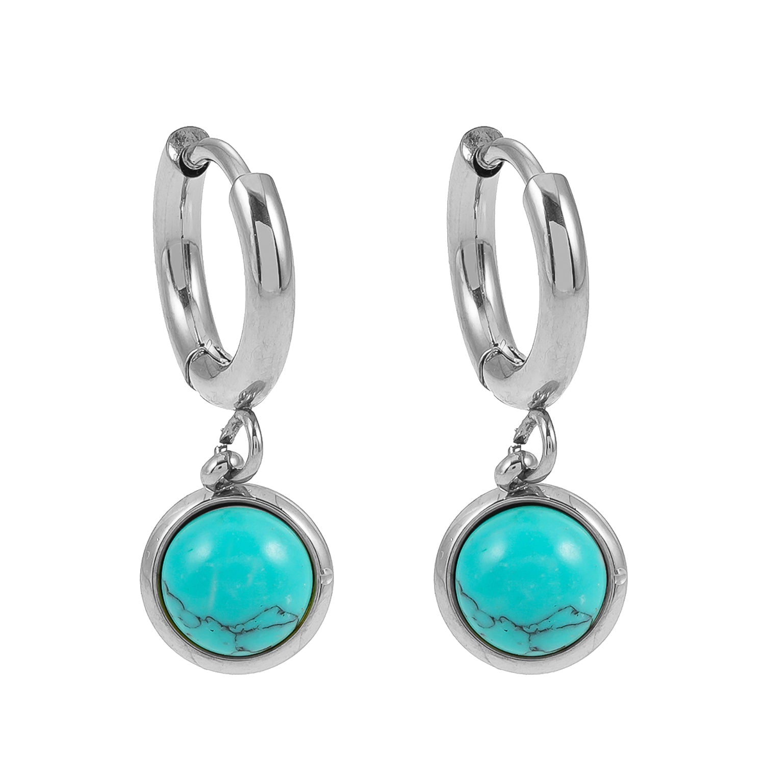 Add a touch of natural elegance to your look with these Green Turquoise Stone Charms anchored on a hoop. Subtle, pretty and eye-catching; perfect for any outfit.