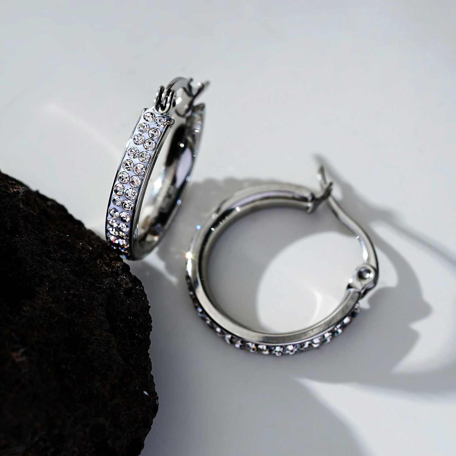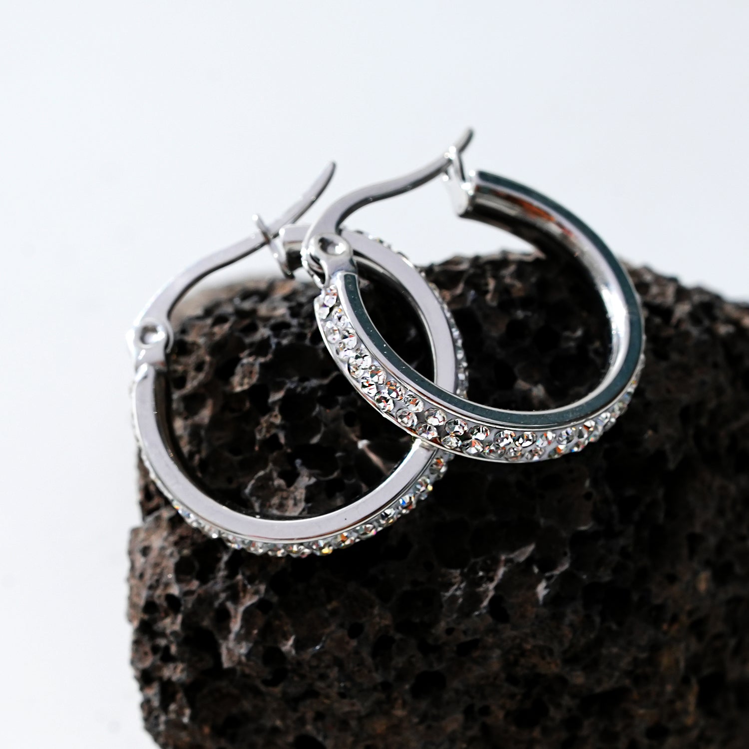 Style YARA: 'Pavé All the Way' Zirconia Hoop Earrings (Small Size) Silver