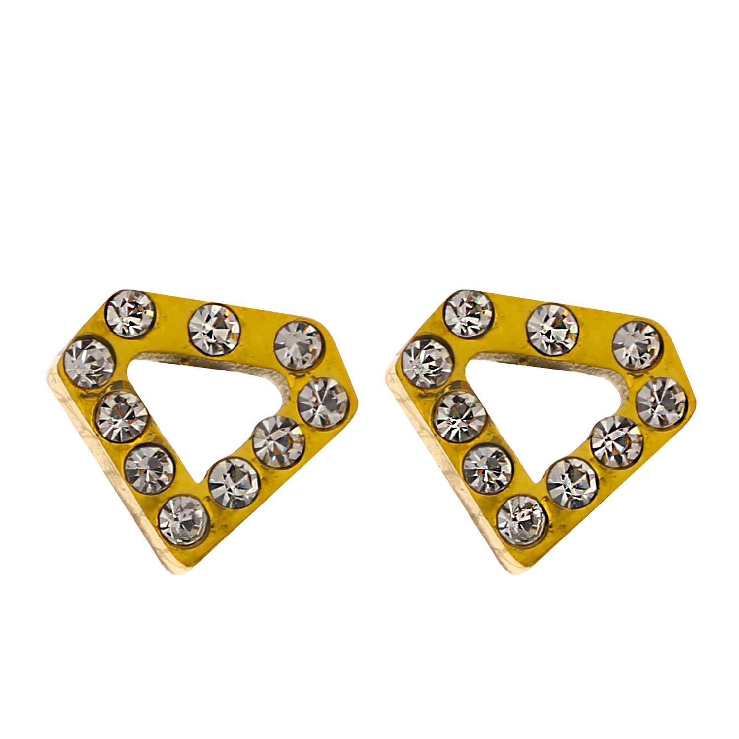 Show off glamorous sparkle with these geometric stud earrings enriched by Zirconia gemstones.